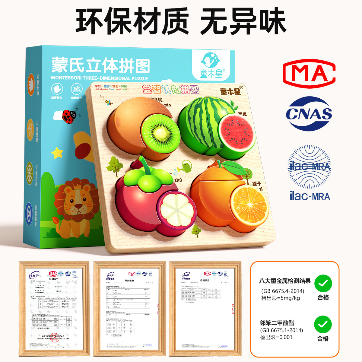 儿童益智力拼图蒙氏早教立体木质拼装积木0到3岁宝宝配对玩具礼物