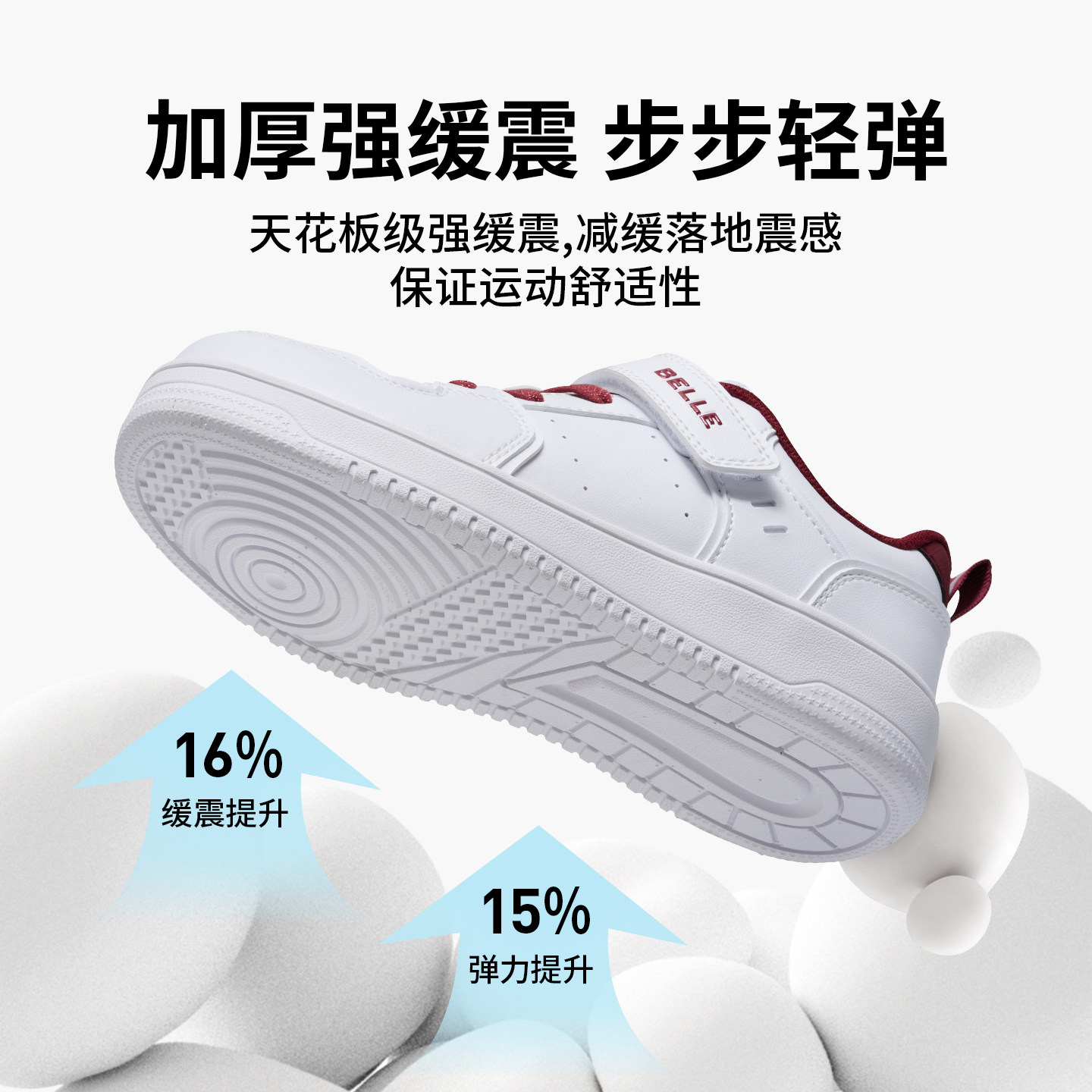 311线报网描述:魔术贴男孩新年过年鞋青少年白色校园暴走鞋