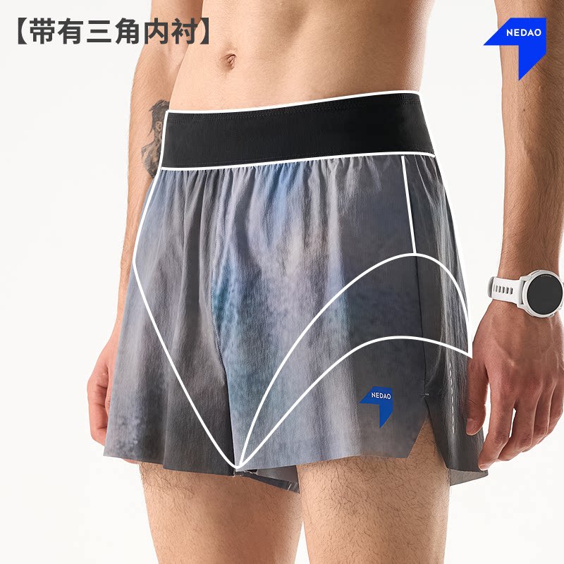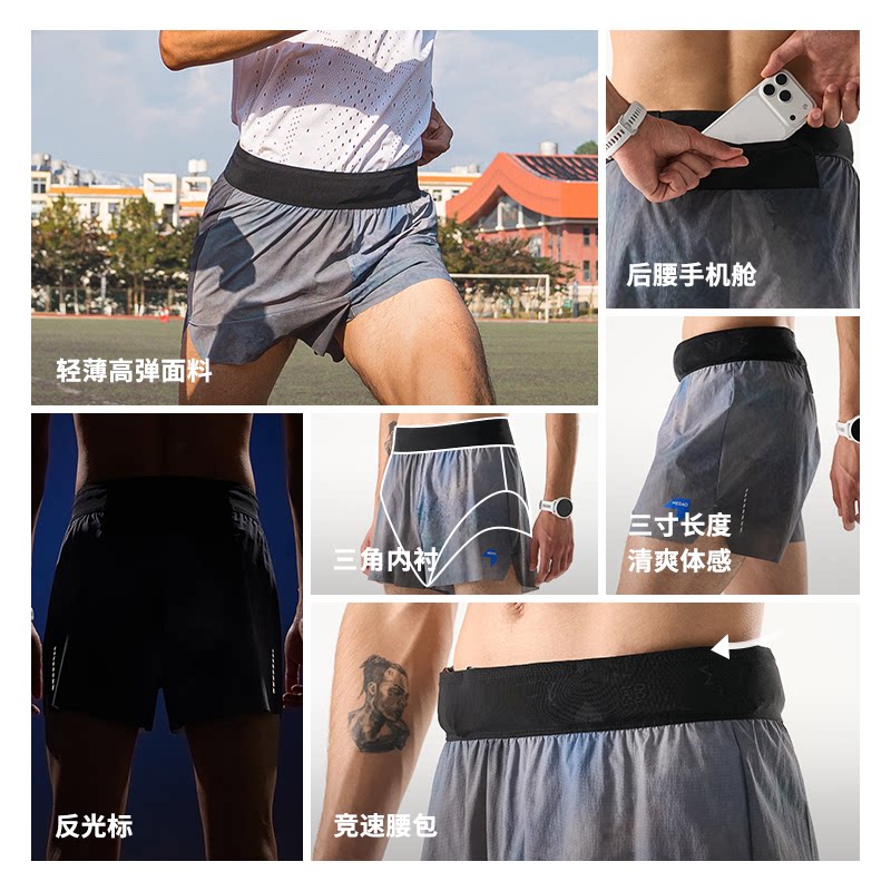 新品丨内道轻翼腰包3寸印花跑步短裤长跑男弹力后腰防水运动裤