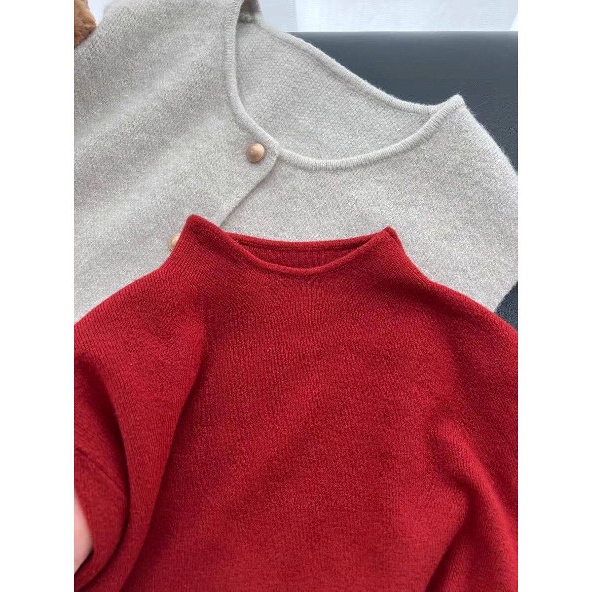 绝美打底衫2026新款今年流行爆款红色毛衣女秋冬内搭针织衫氛围感