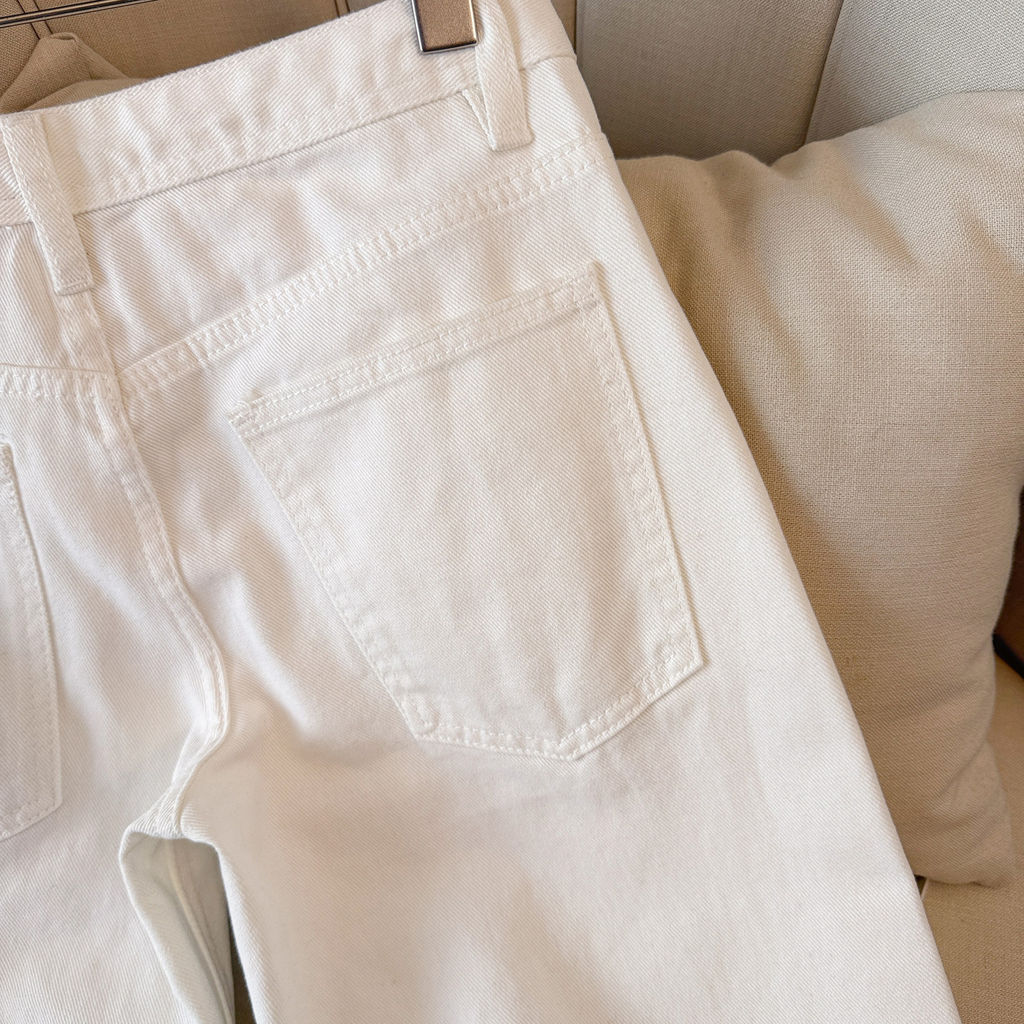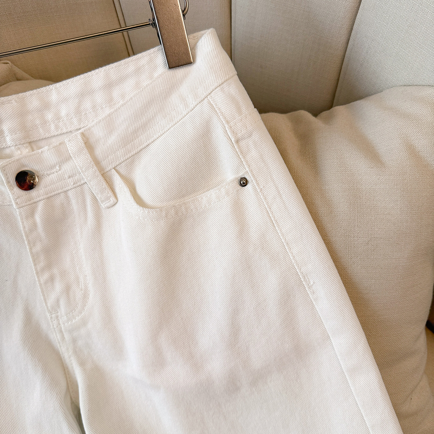 艾格白色低腰直筒牛仔裤女2026春季新款显瘦百搭窄版阔腿休闲裤