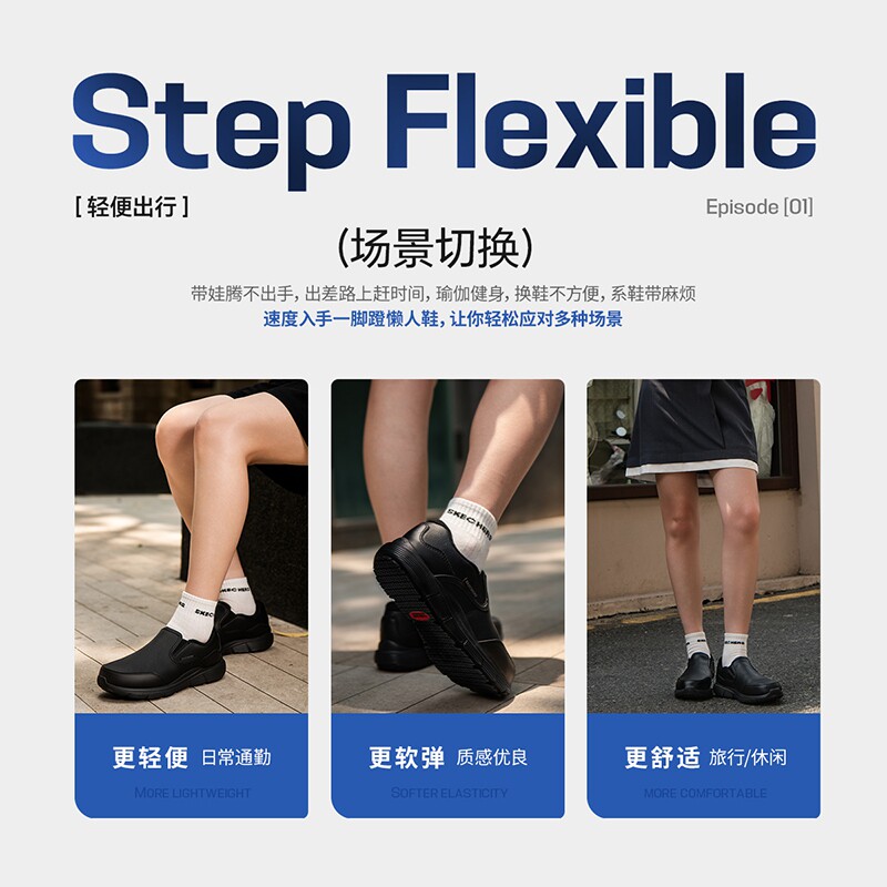 斯凯奇女鞋官方正品2026新款夏季一脚蹬工作鞋软底运动休闲皮鞋