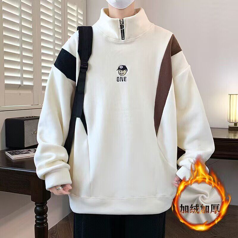 青少年半高领加绒加厚卫衣男秋冬季新款初中高中学生大童保暖上衣