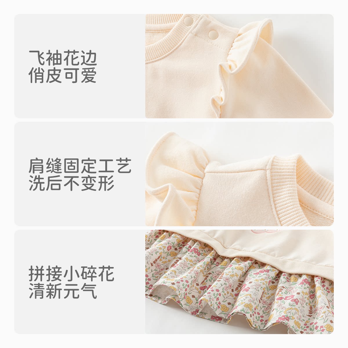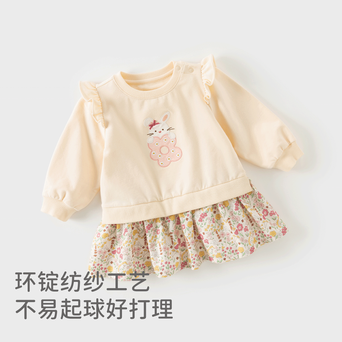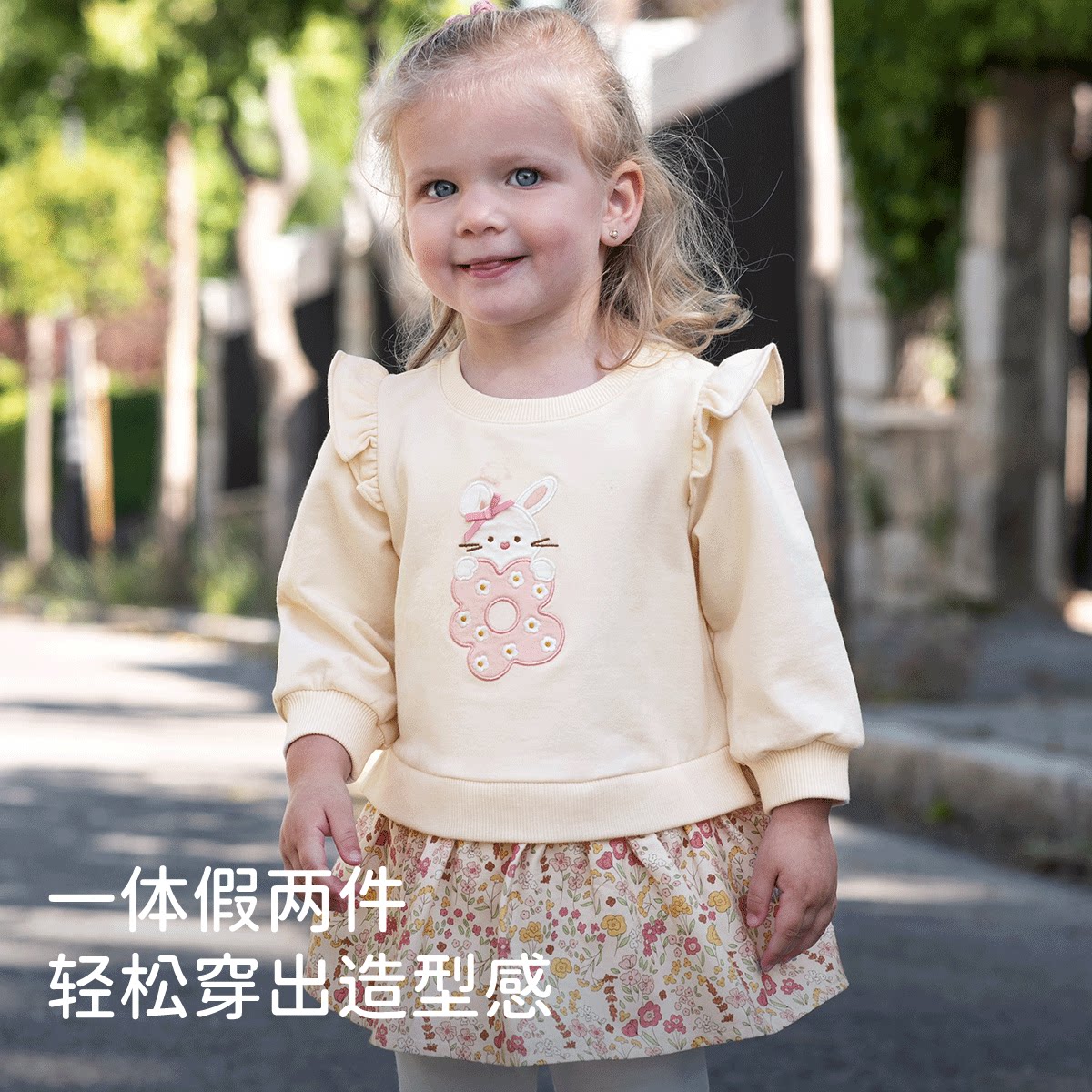 戴维贝拉儿童裙式上衣2026春装新款女童碎花连衣裙卫衣长袖飞袖