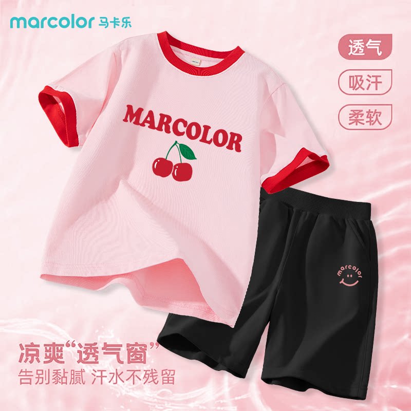 马卡乐童装女童短袖t恤儿童2026新款夏季纯棉套装男孩小狗上衣薄