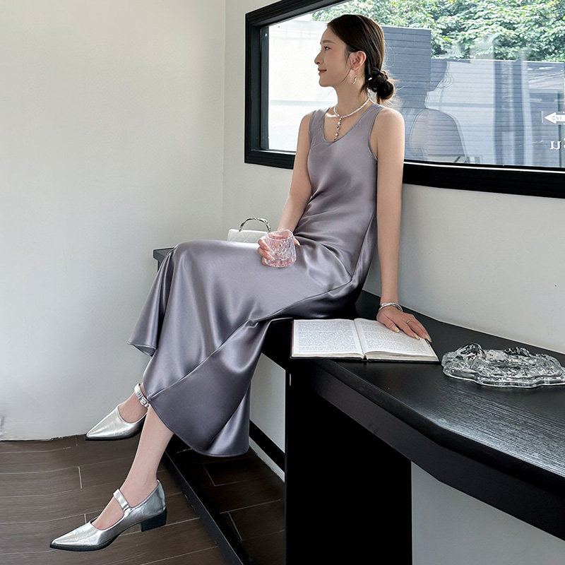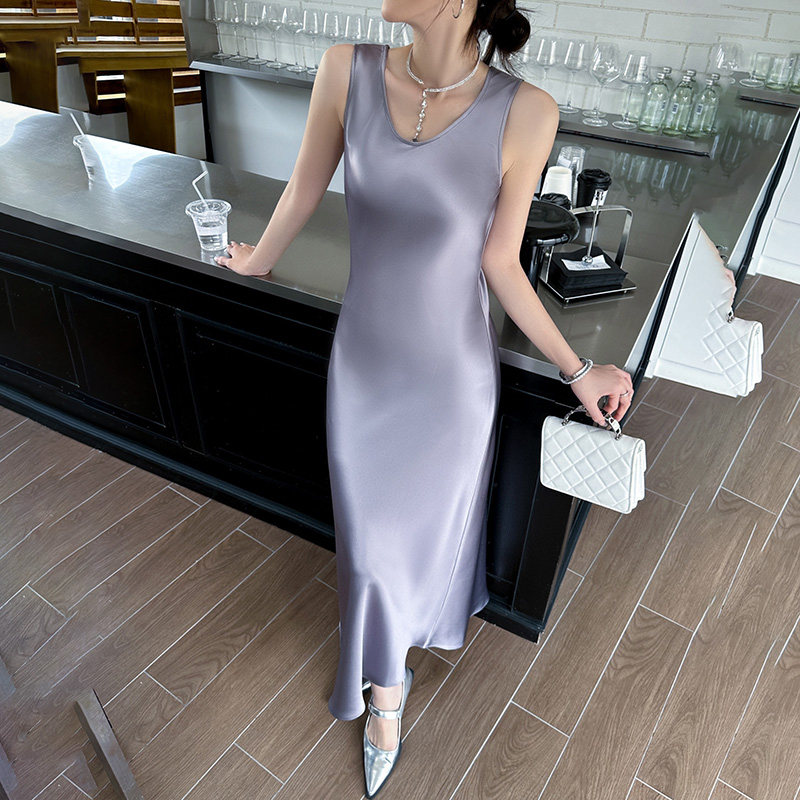 法式气质名媛风修身显瘦长裙高级感醋酸缎面吊带连衣裙女夏季新款