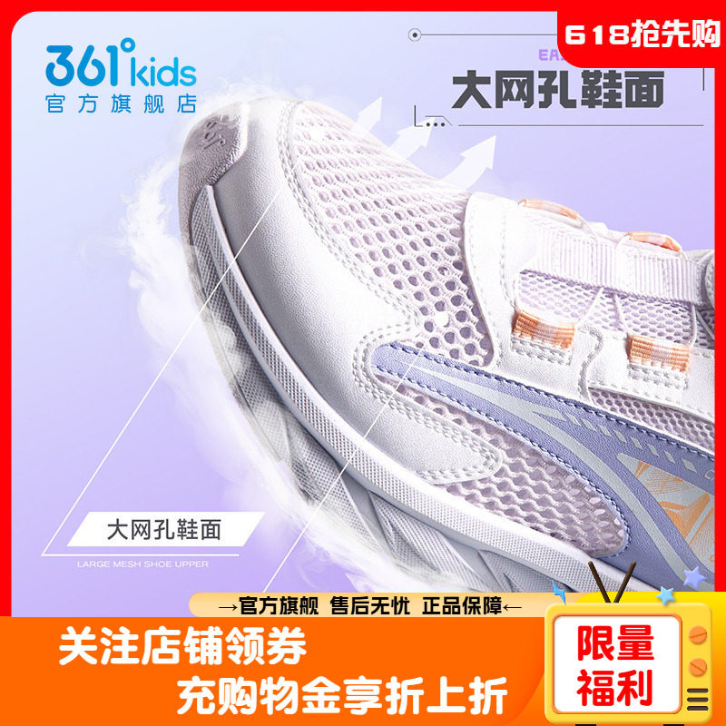 361童鞋女童大网眼运动鞋夏季儿童单网面透气网鞋女款旋钮扣跑鞋
