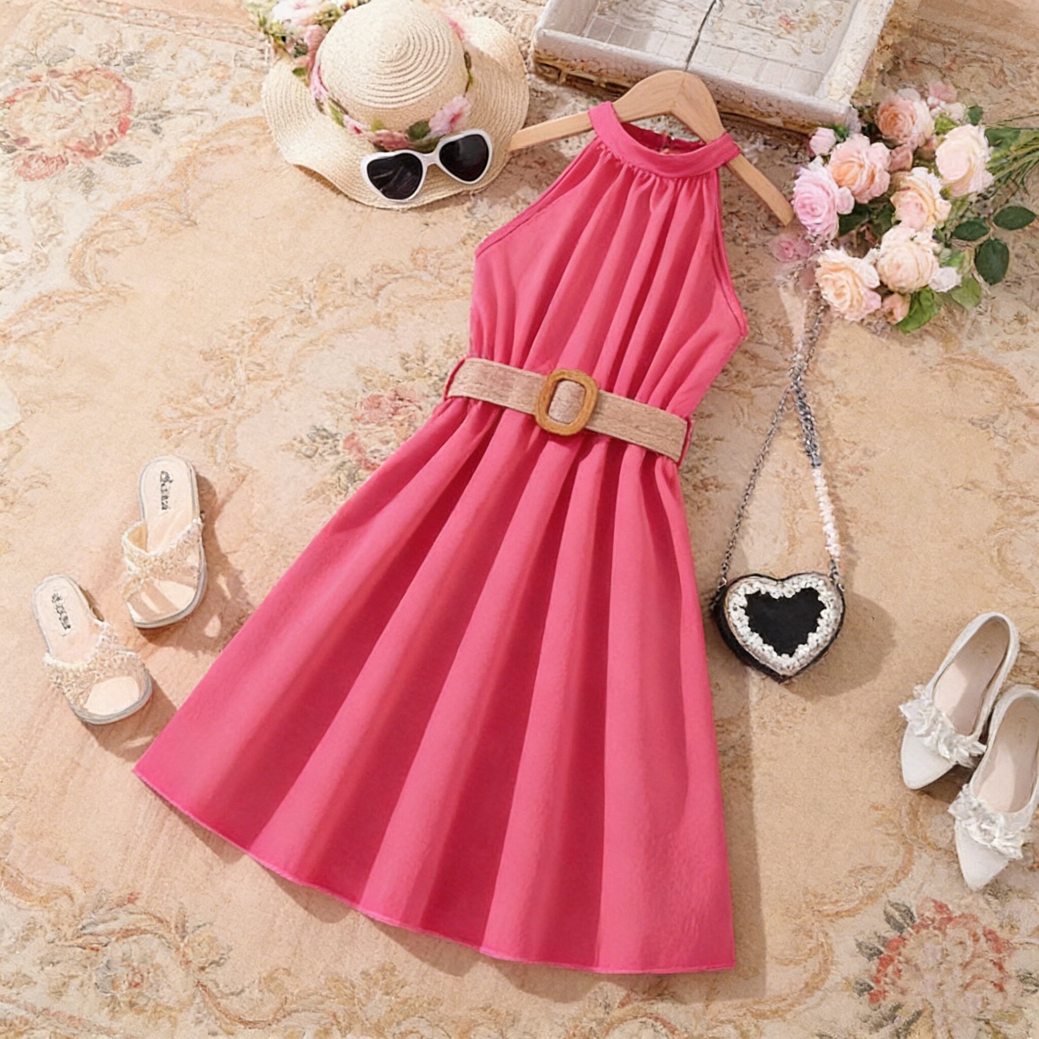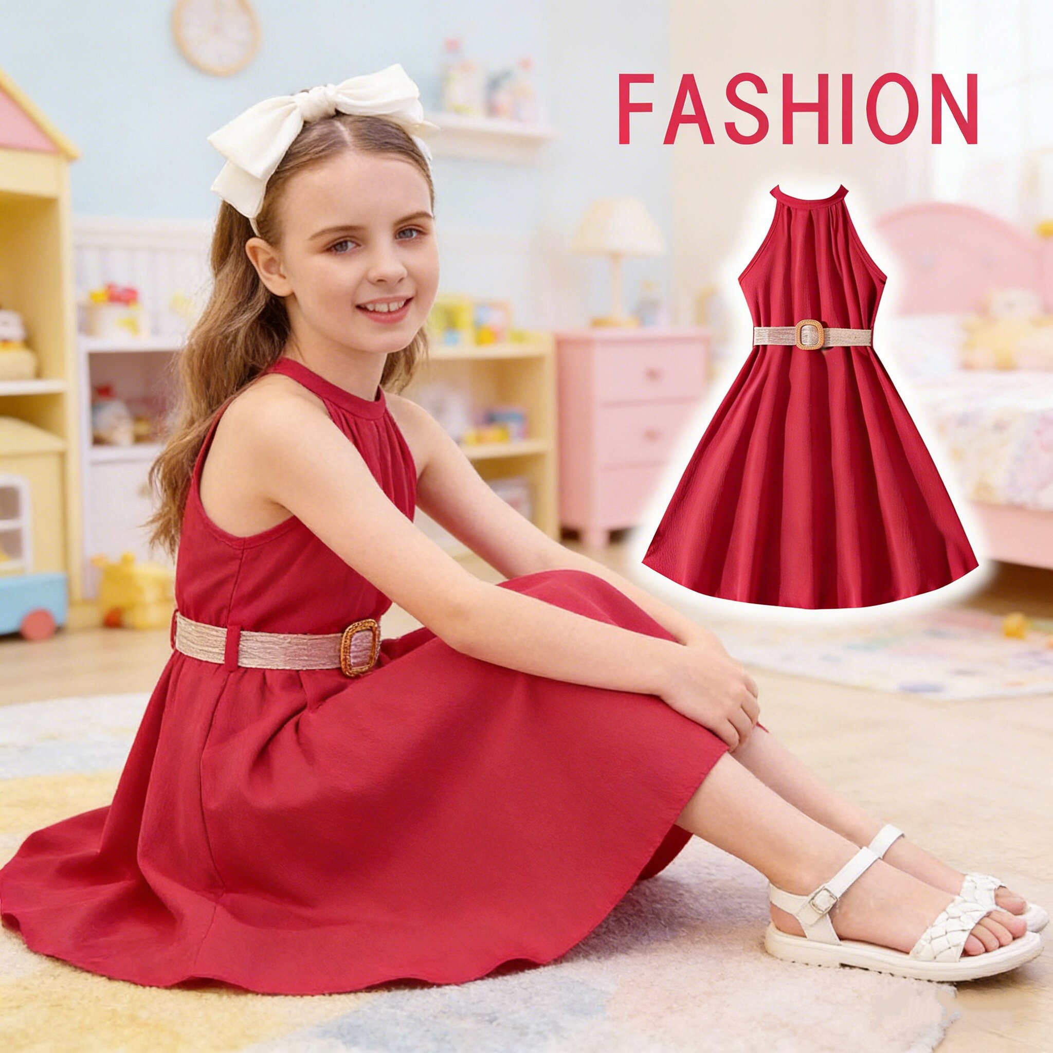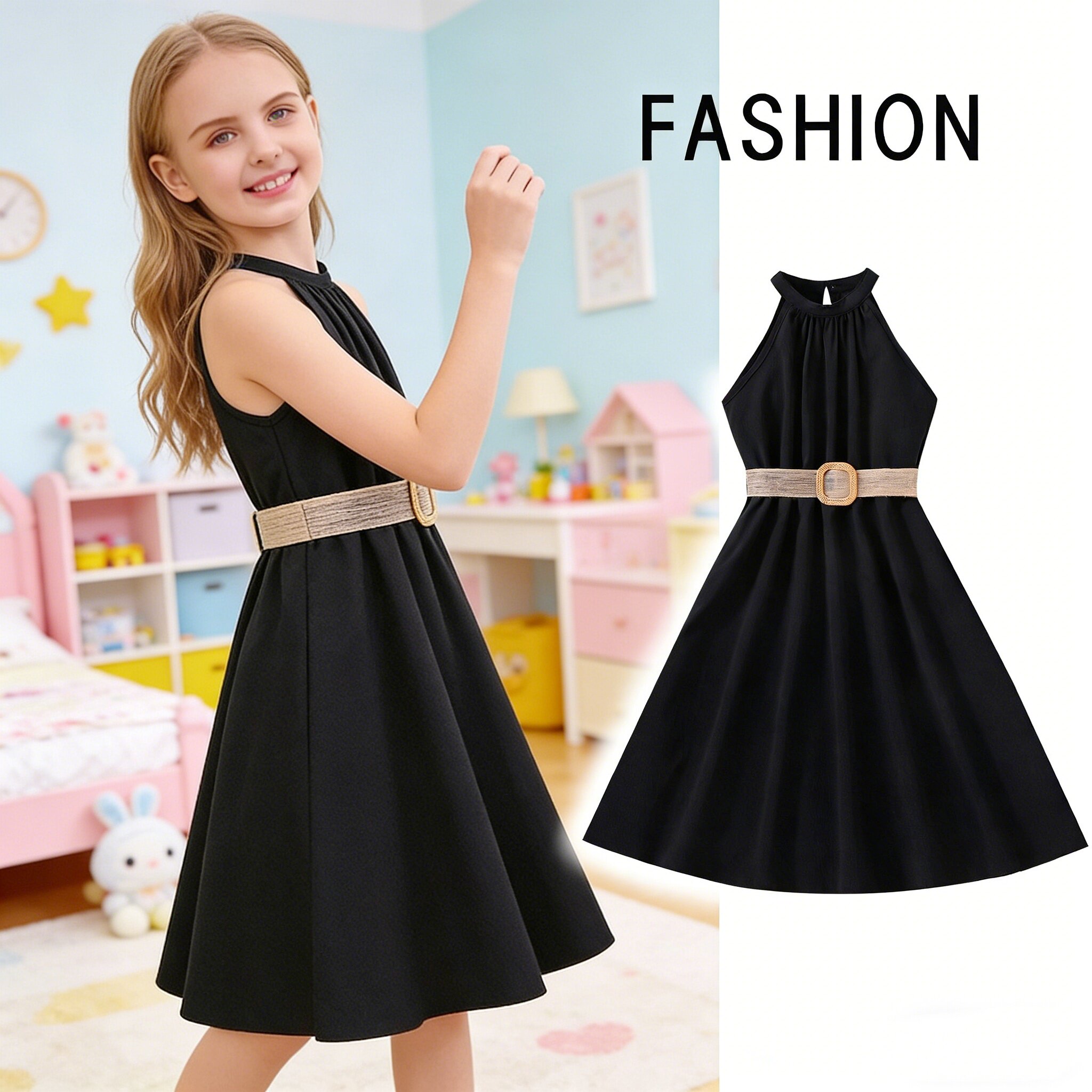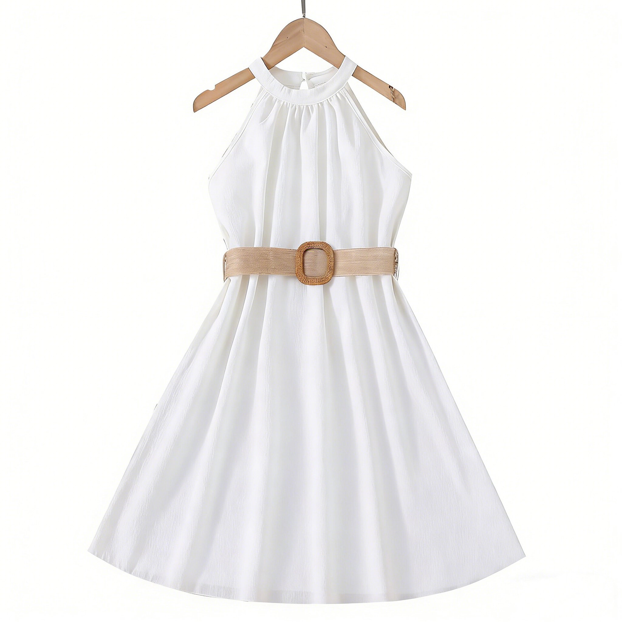 5夏装4女童6纯色无袖露肩挂脖连衣裙7儿童装8小女孩3岁公主裙宝宝