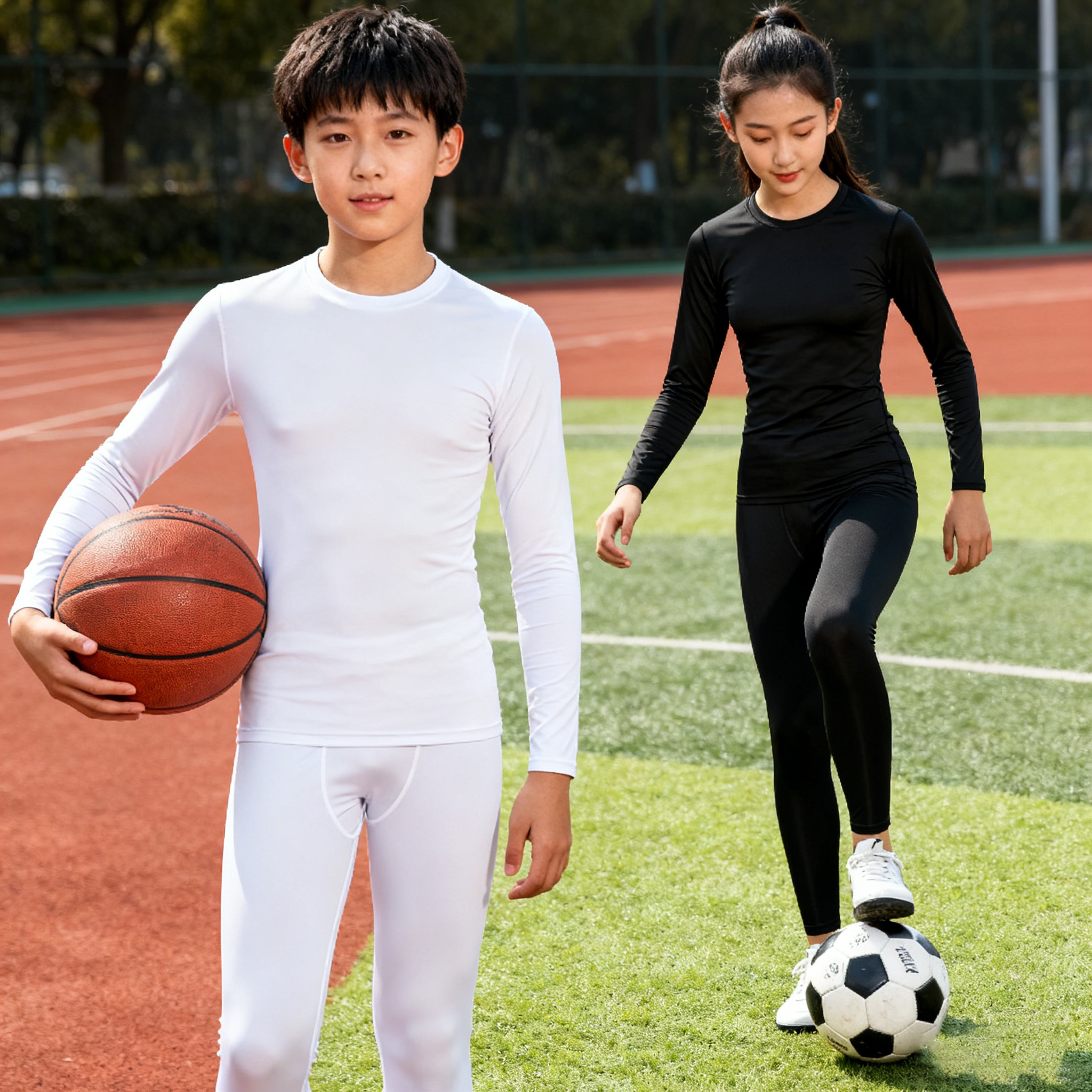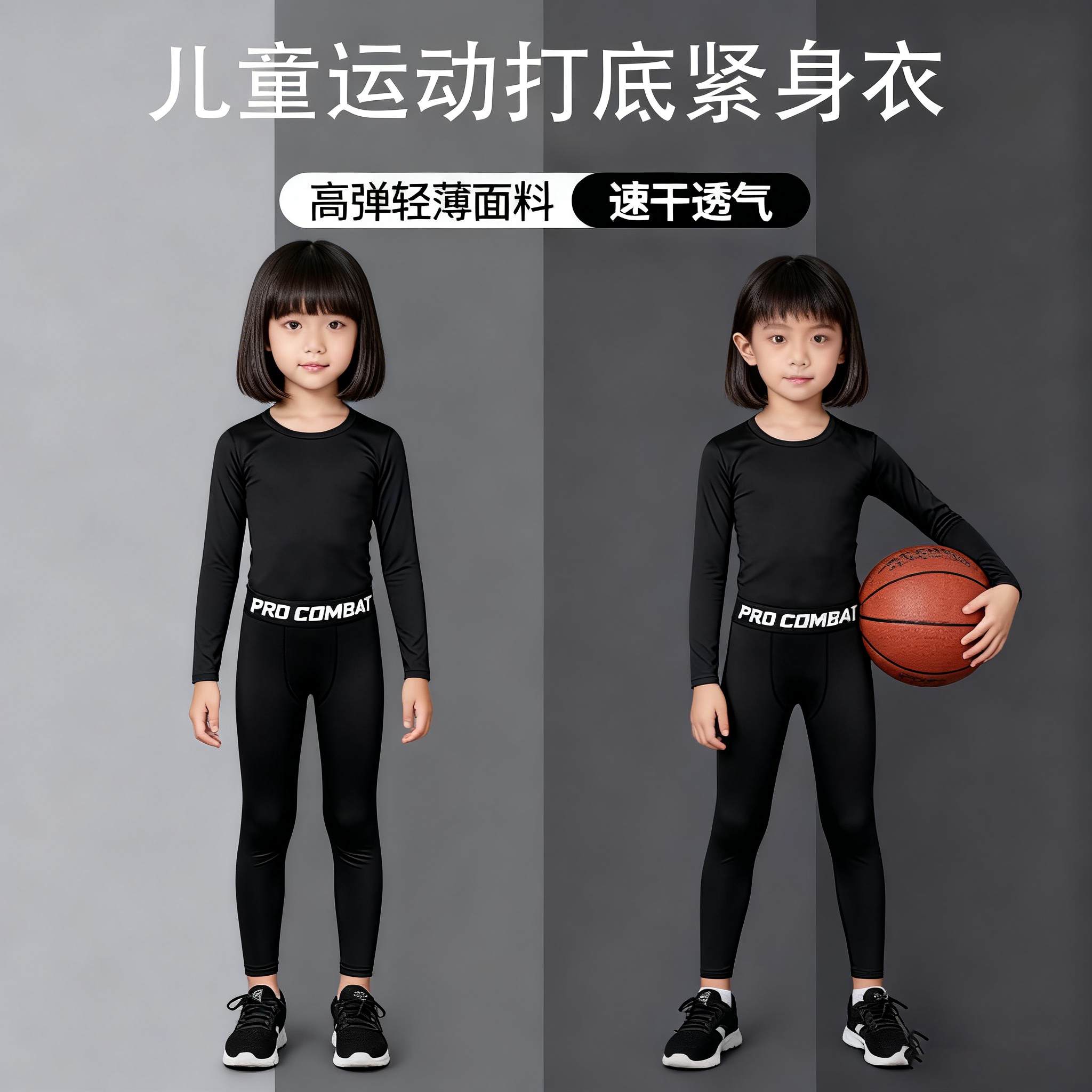 儿童运动紧身衣套装速干透气篮球足球训练服高弹轻薄保暖打底男女
