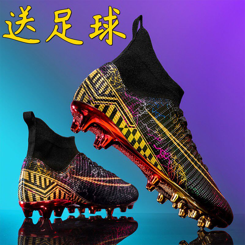 C罗鸳鸯高帮足球鞋男刺客女tf碎钉梅西AG长钉中小学生男童训练鞋