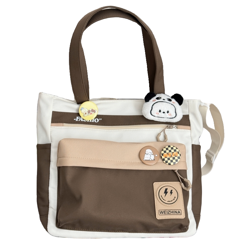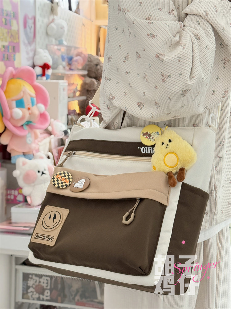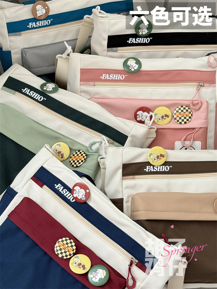 设计感撞色少女学生手提袋女高中生补习斜挎包初中生大容量单肩包
