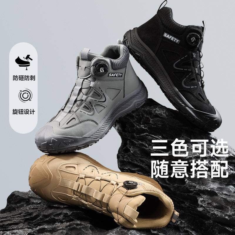 古伊萨劳保鞋男款士夏季透气高帮防砸防刺穿轻便钢头工地耐磨工作