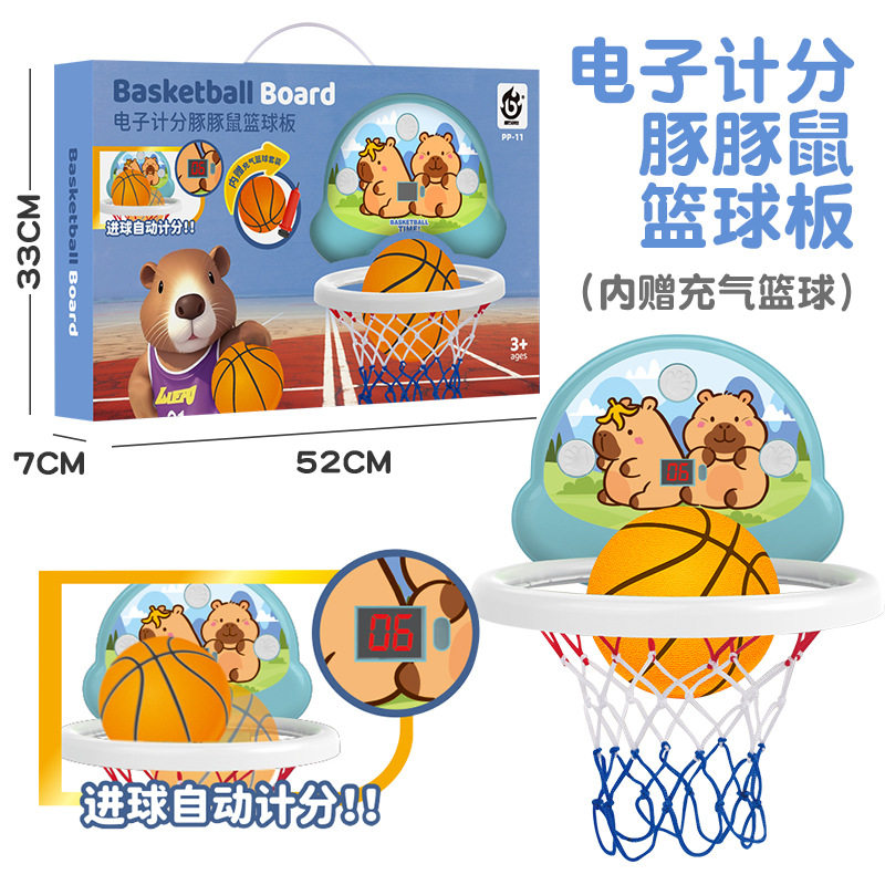 电子计分豚豚鼠篮球板玩具儿童篮球框挂式投篮架室内家用儿童玩具