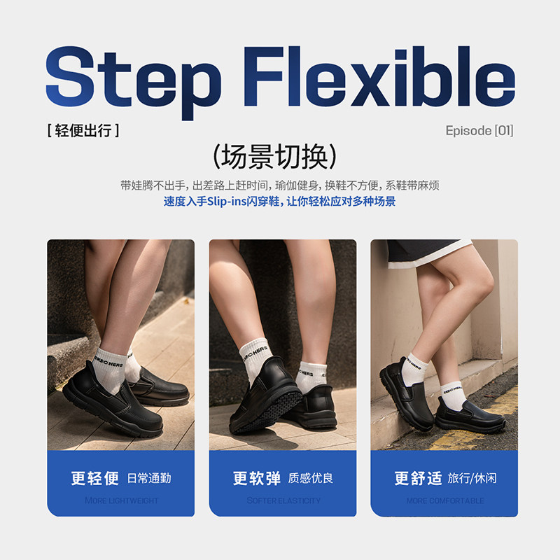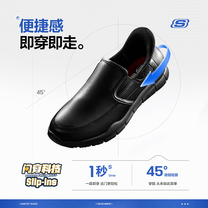 斯凯奇真皮女鞋2026新款夏季一脚蹬闪穿鞋运动休闲皮鞋软底工作鞋