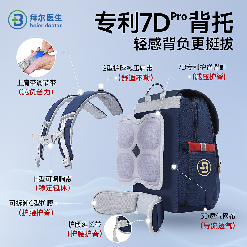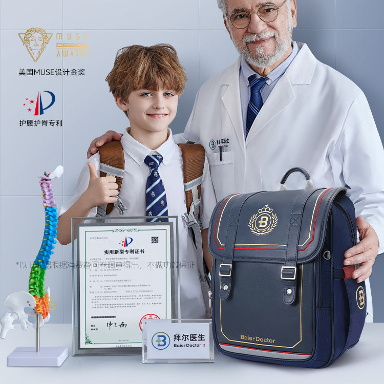 拜尔医生儿童书包小学生男童三到六年级双肩包超轻护脊专用大容量