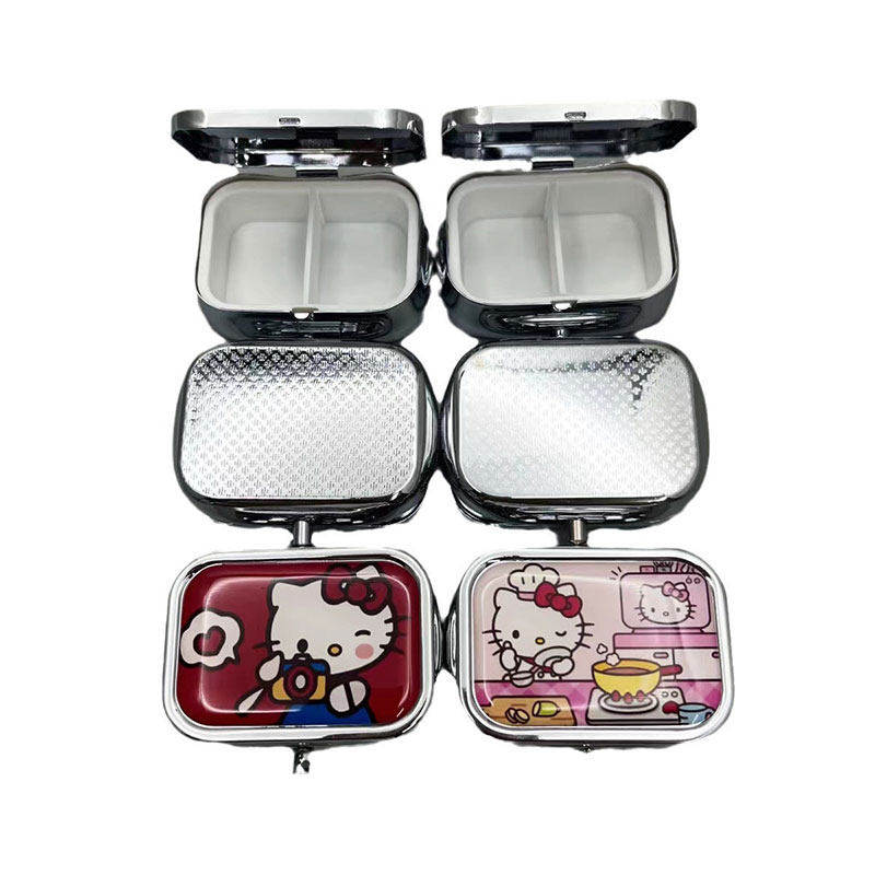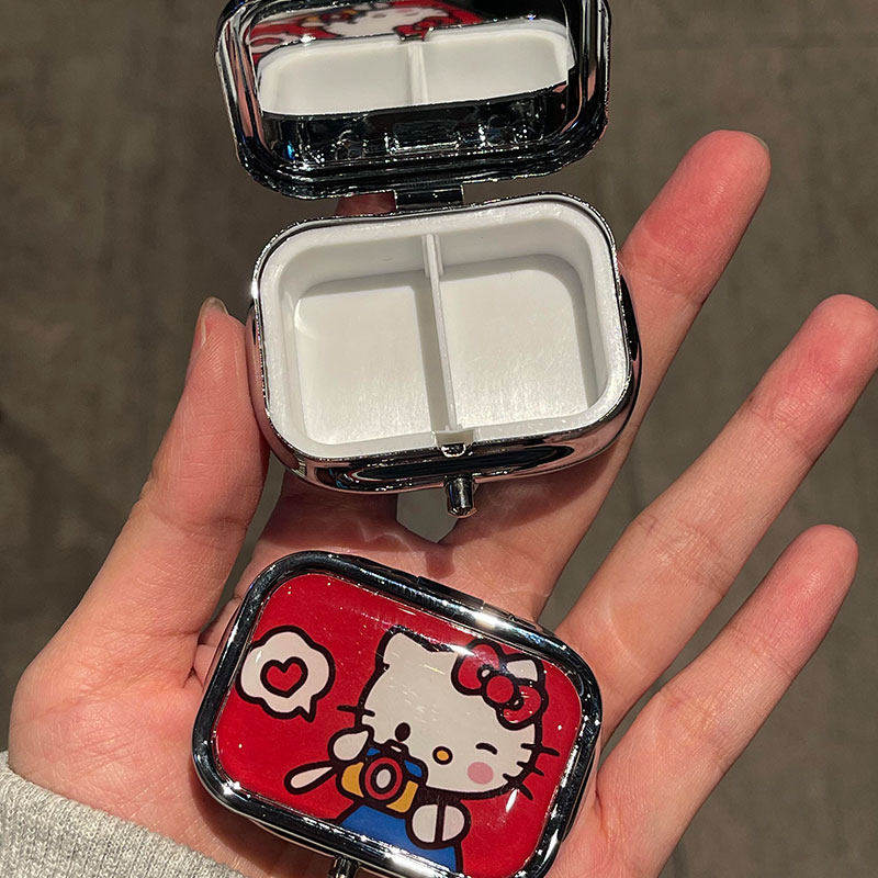 可爱kitty迷你便携式随身小药盒药丸盒内两格金属盒首饰盒带镜片