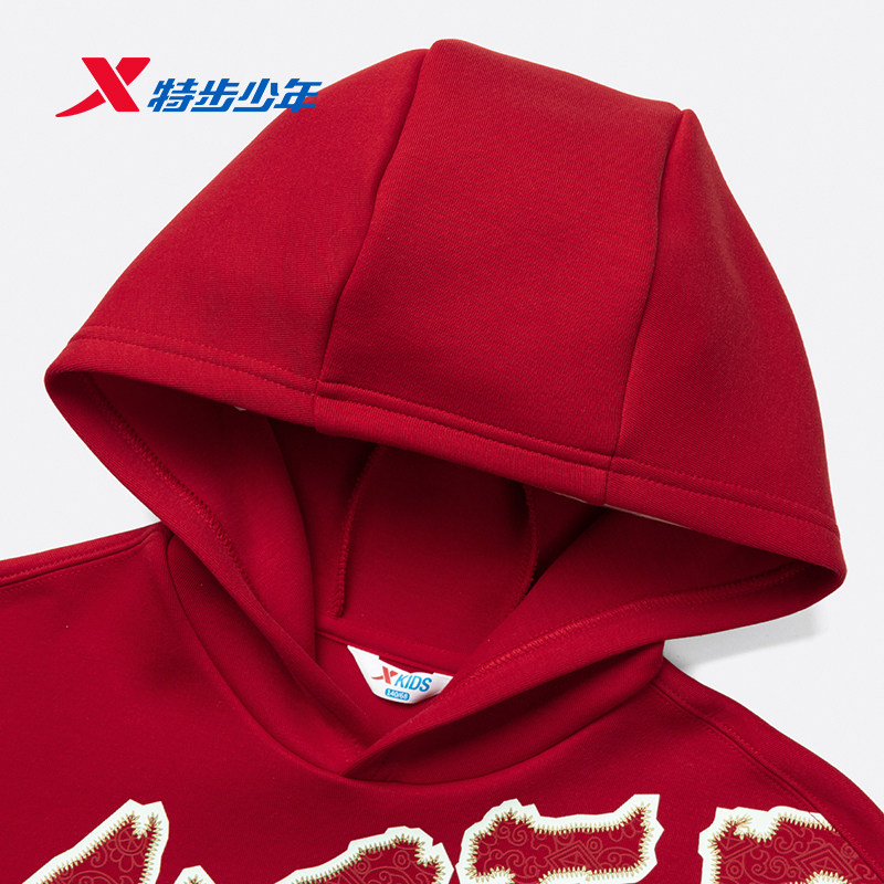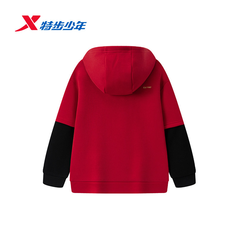 【商场同款】特步童装儿童连帽卫衣男童新年款加厚中大童保暖上衣