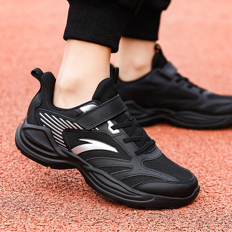 安踏儿童运动鞋男童2026春季新款网面透气轻便跑步鞋黑色休闲鞋男