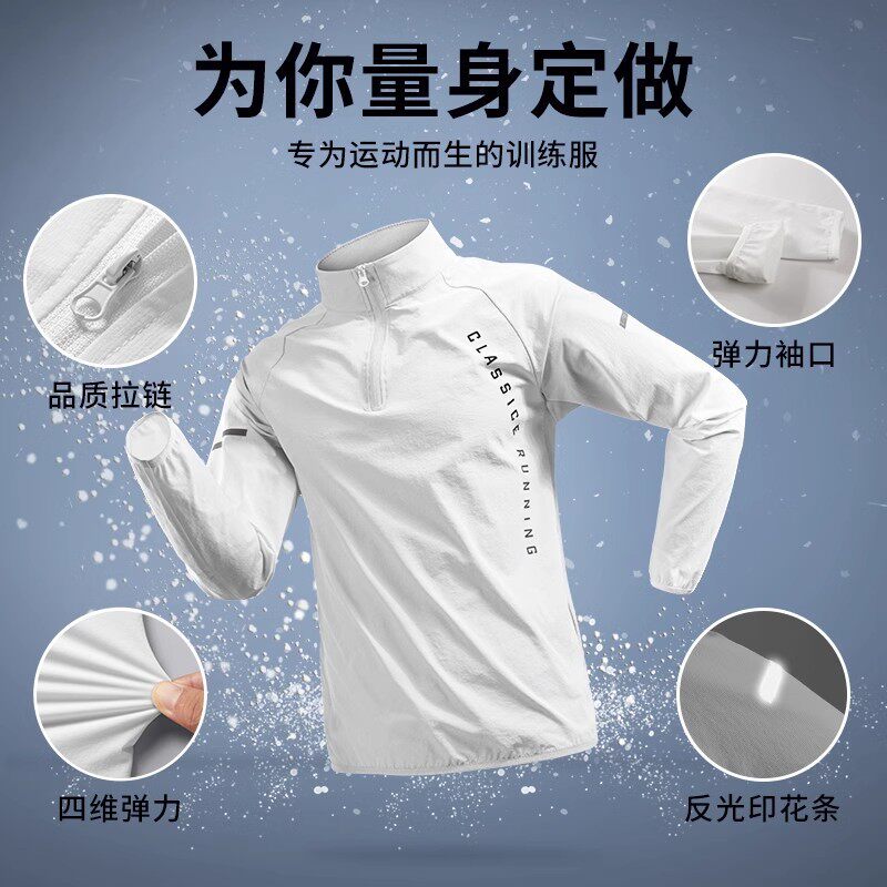半拉链训练服男速干衣防晒长袖体育生运动t恤跑步外套健身夏季
