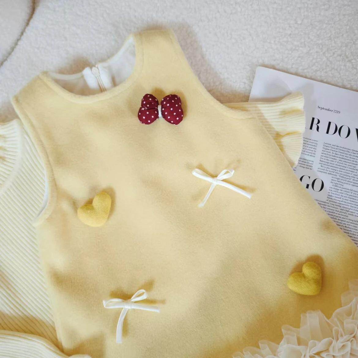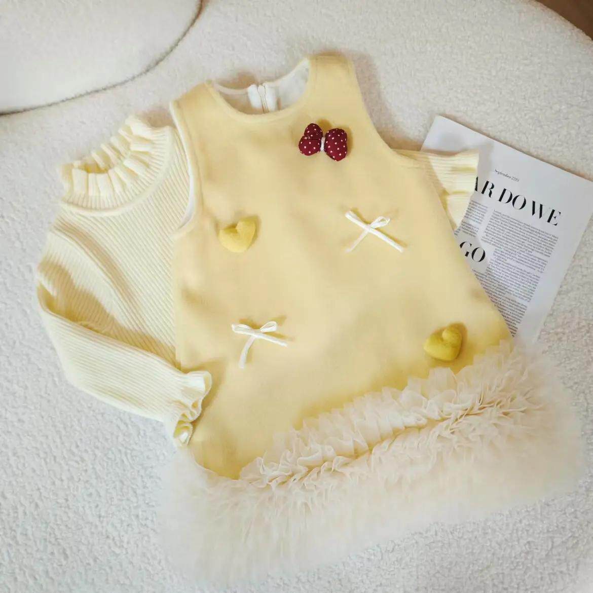 女童小香风针织衫背带裙套装秋冬2025新款打底毛衣毛呢花边连衣裙