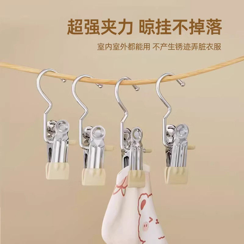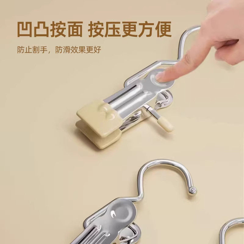 家用无痕裤夹子不锈钢多功能带挂钩裤子收纳神器单个衣架防风衣柜
