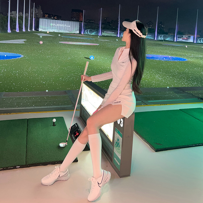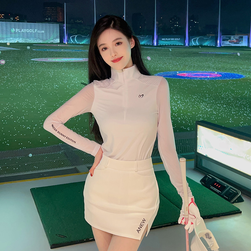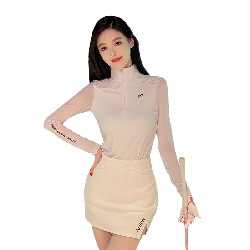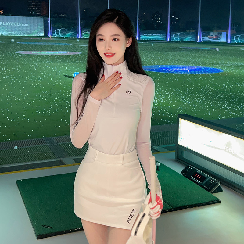 夏季高尔夫女装弹力防晒白色长袖T恤上衣速干运动防走光半身短裙
