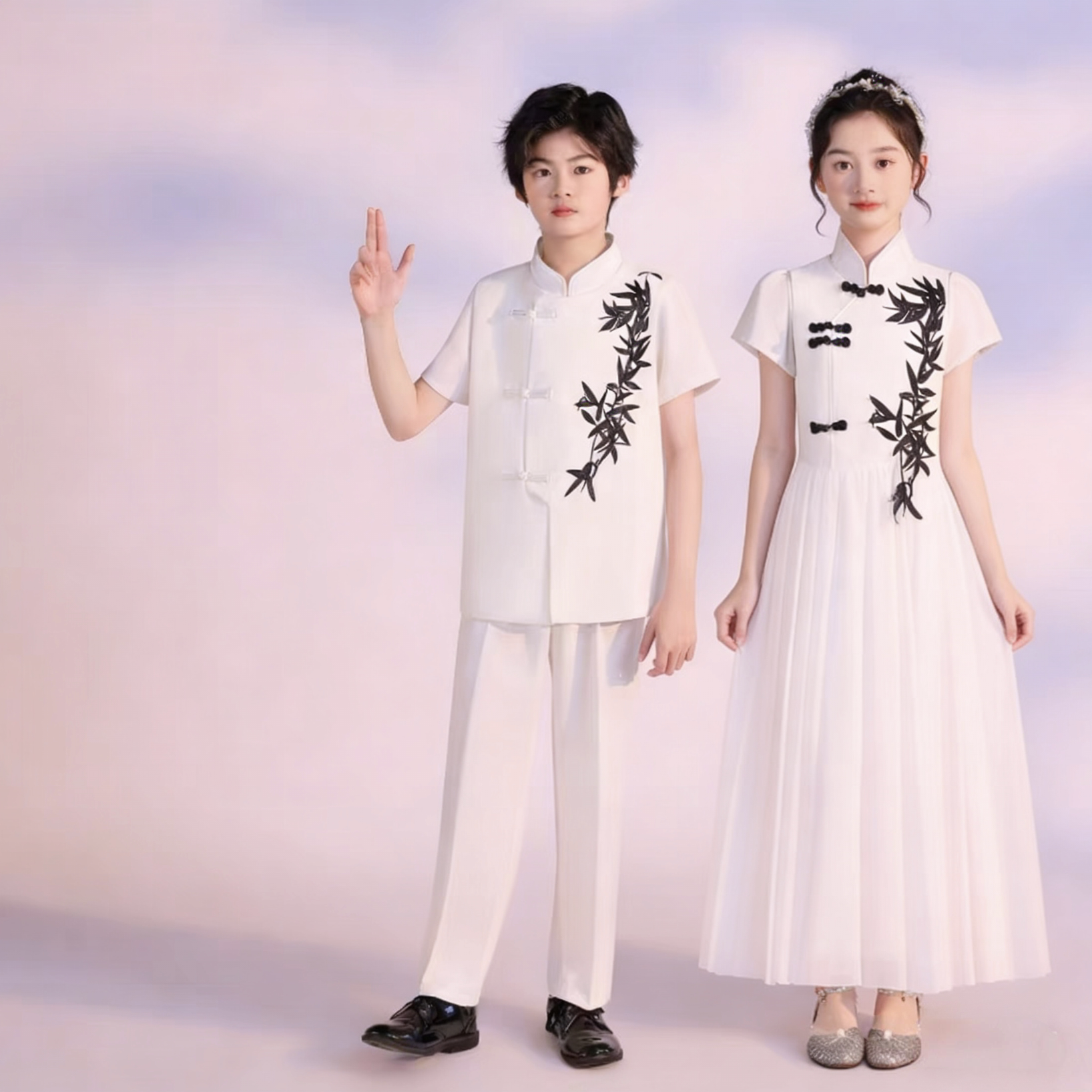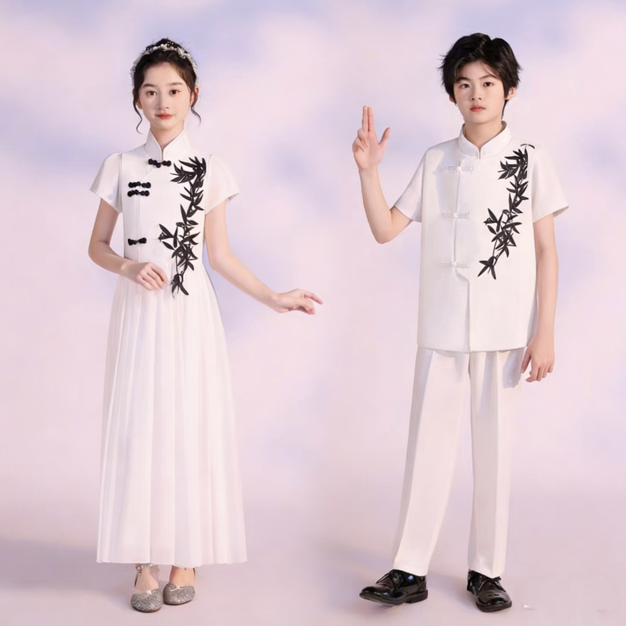 儿童合唱朗诵演出服初中小生学生白色中国风女男童演讲比赛青年装