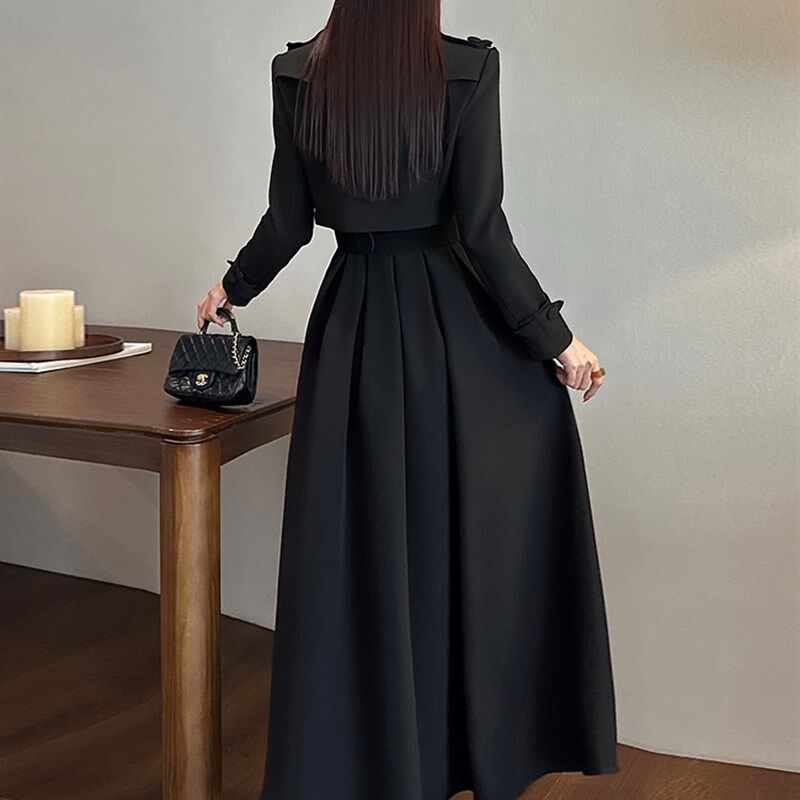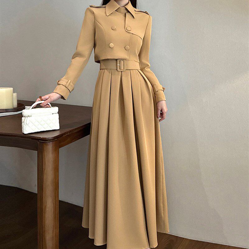 百褶大摆连衣裙长袖修身外套套装时尚洋气减龄显瘦遮肉两件套秋冬