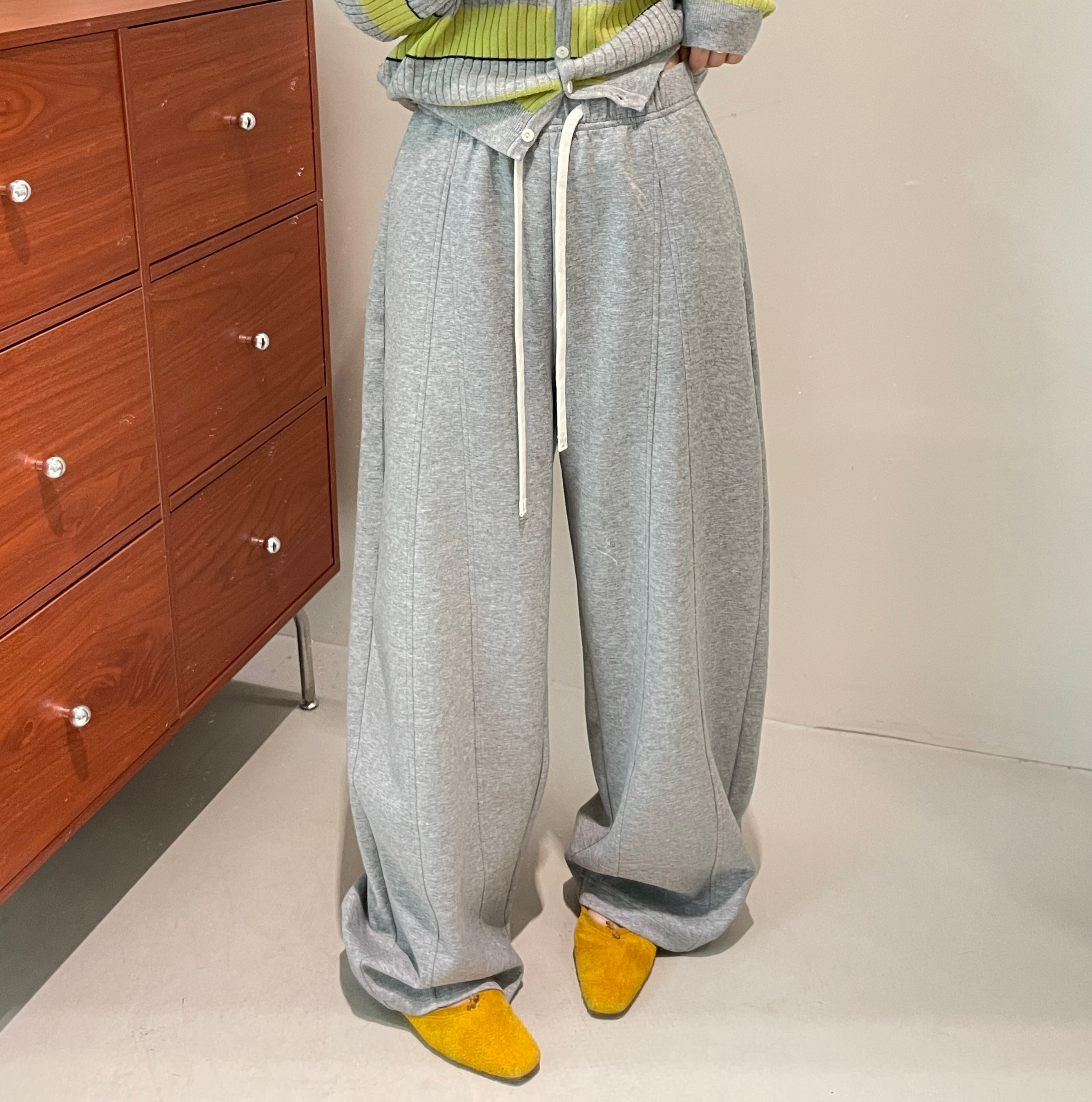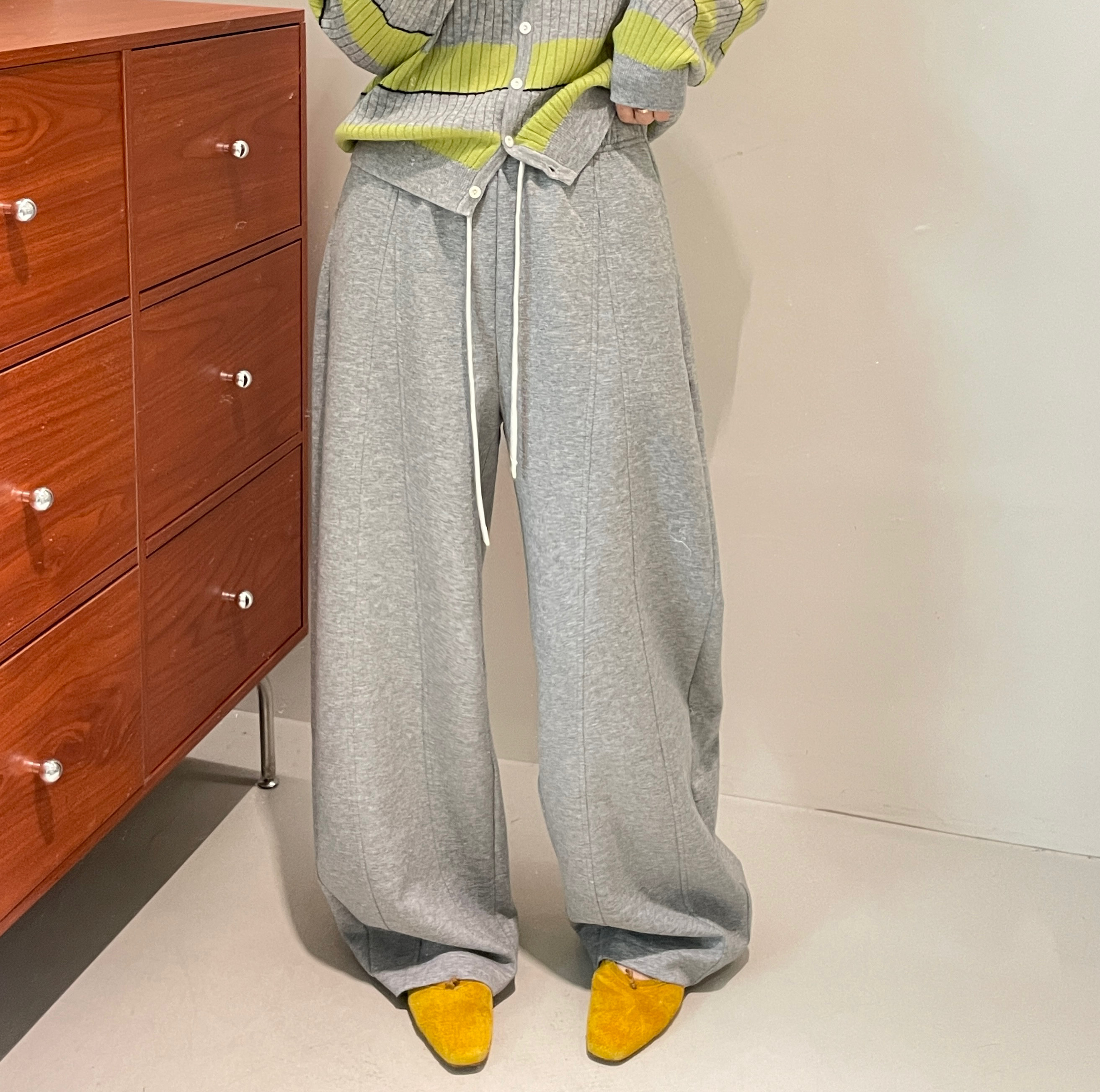 2026春款高腰抽绳卫裤女宽松直筒长裤灰色松紧腰休闲裤舒适百搭潮