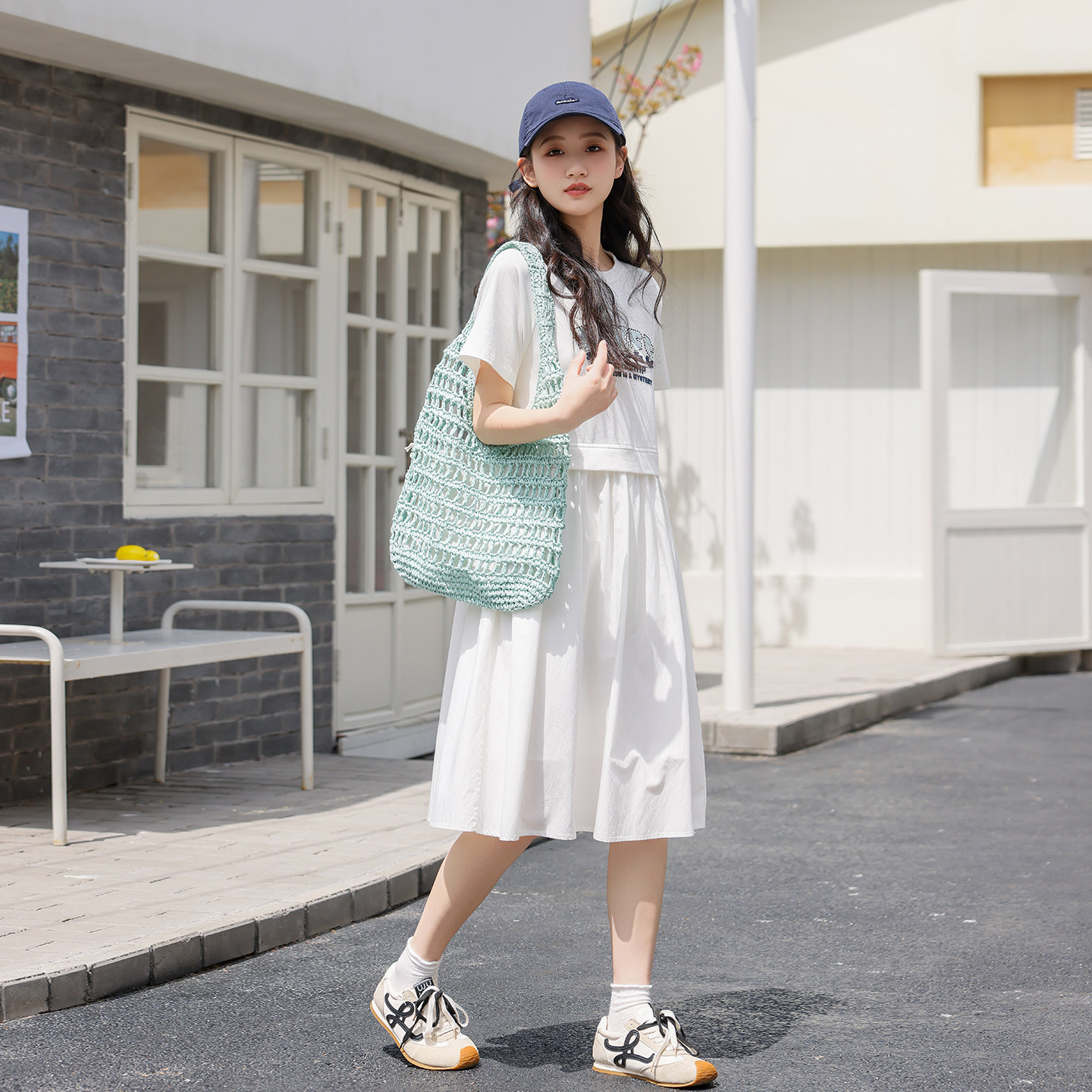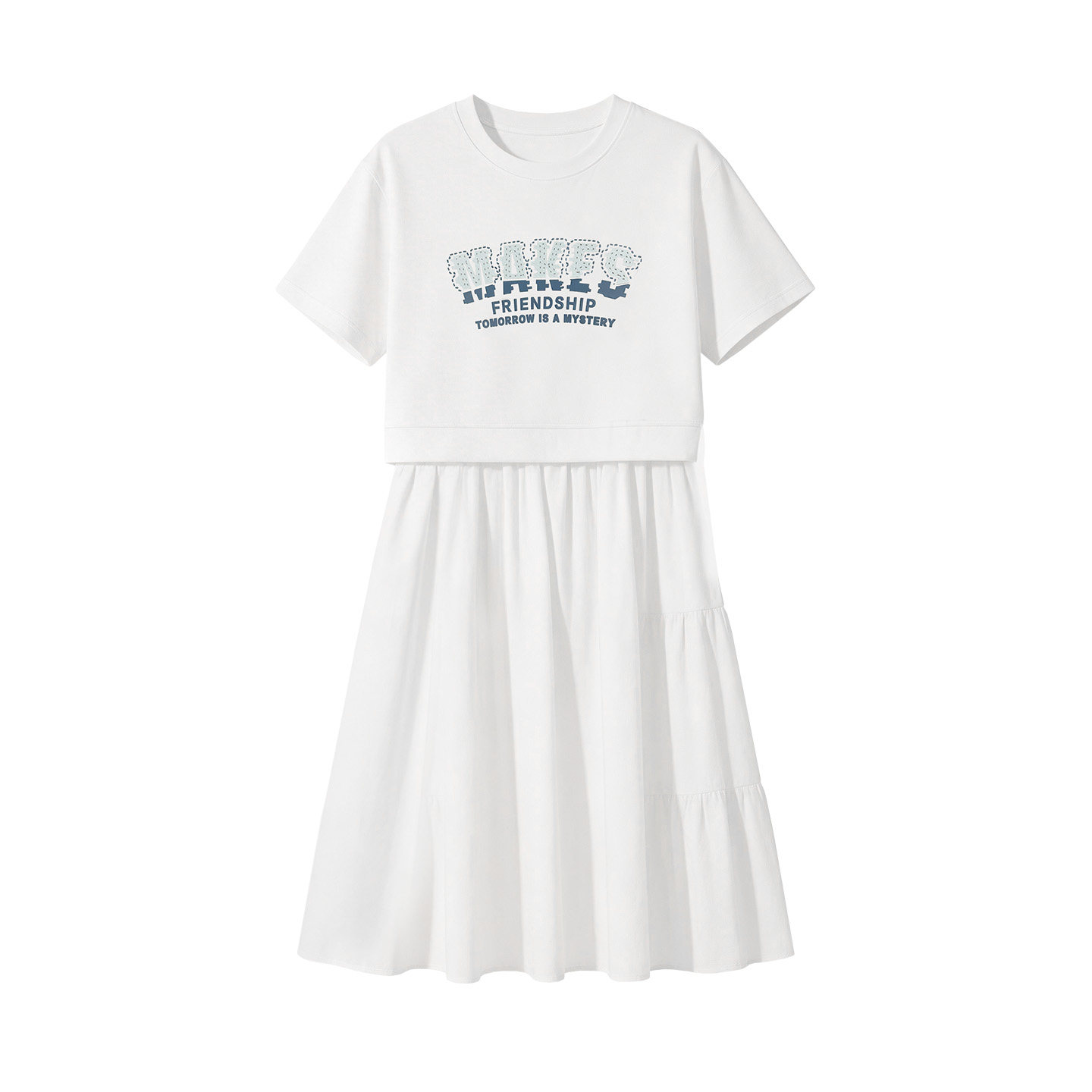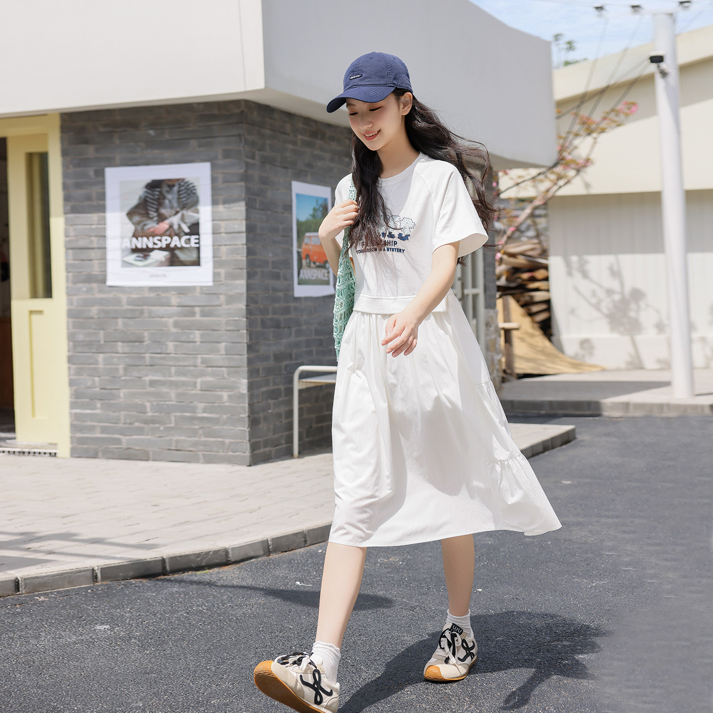 初中生连衣裙夏装2026新款少女宽松拼接假两件T恤裙高中学生裙子