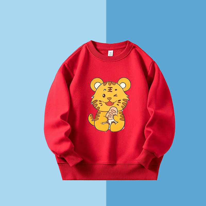 男童卫衣儿童春装长袖上衣无帽秋款男孩女童十二生肖老虎衣服套头