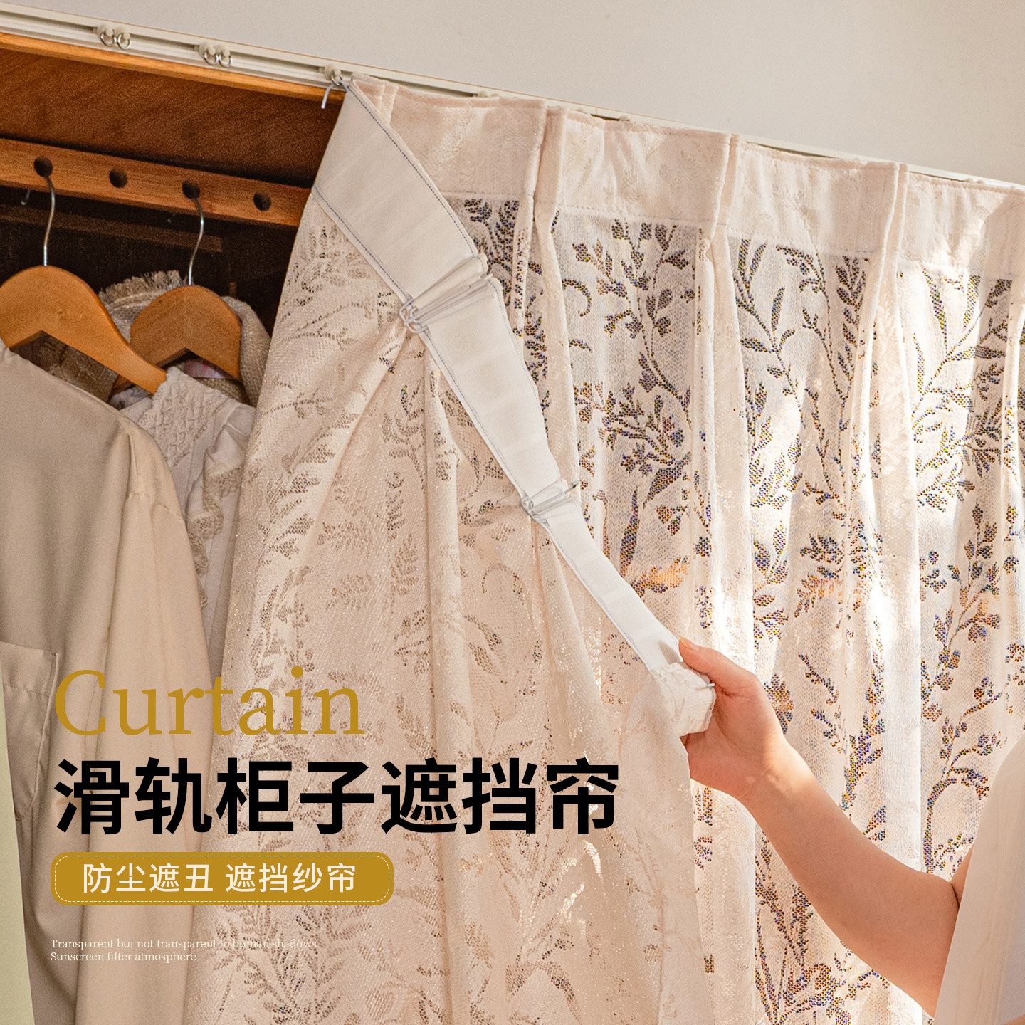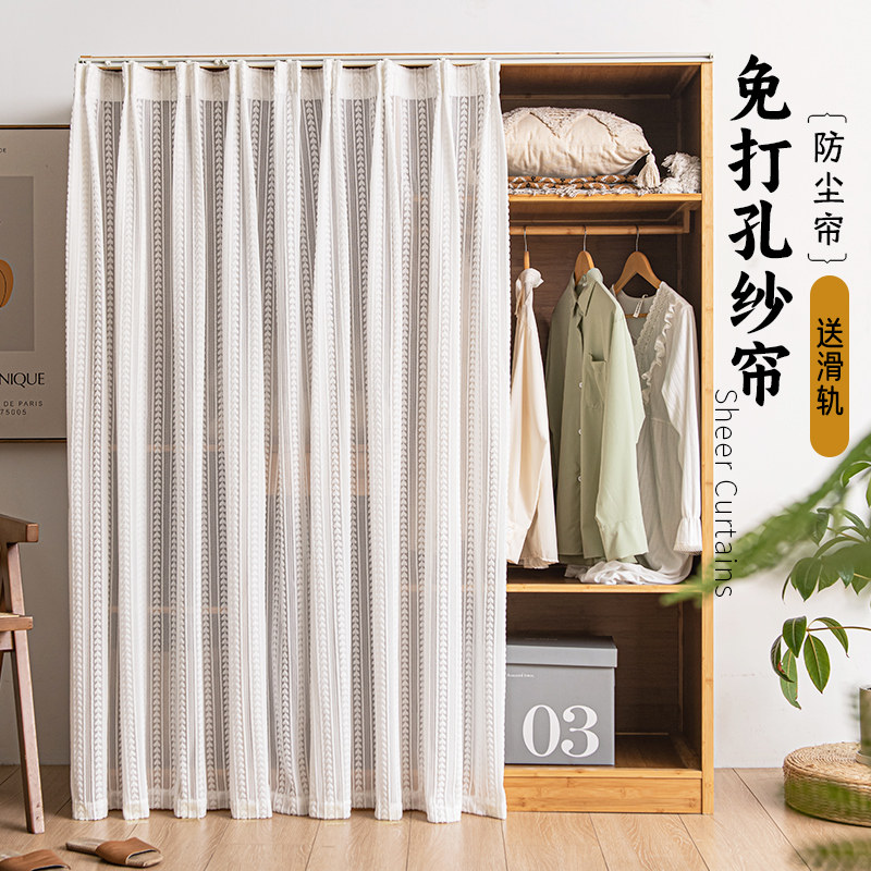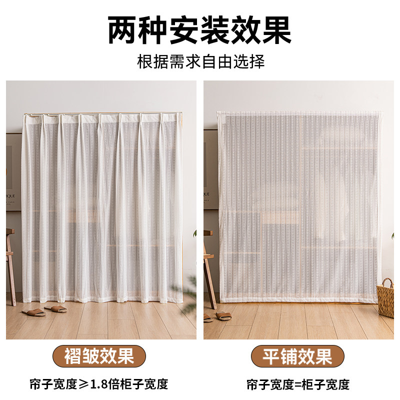 衣柜遮挡帘无门衣帽间纱帘免打孔货架书柜置物鞋架杂物柜子防尘帘