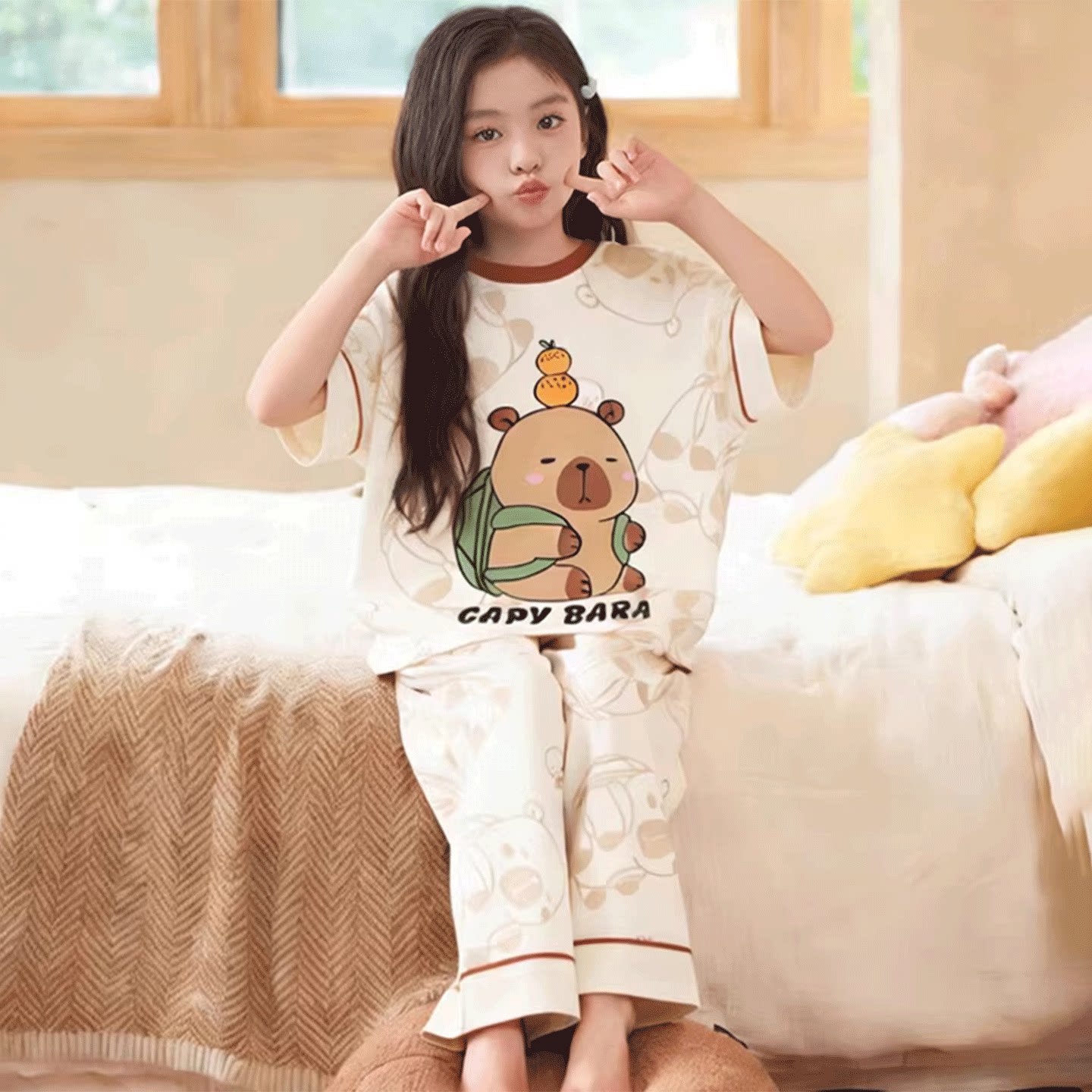 儿童睡衣女童夏季短袖薄款纯棉男童家居服卡皮巴拉中大童兄妹套装