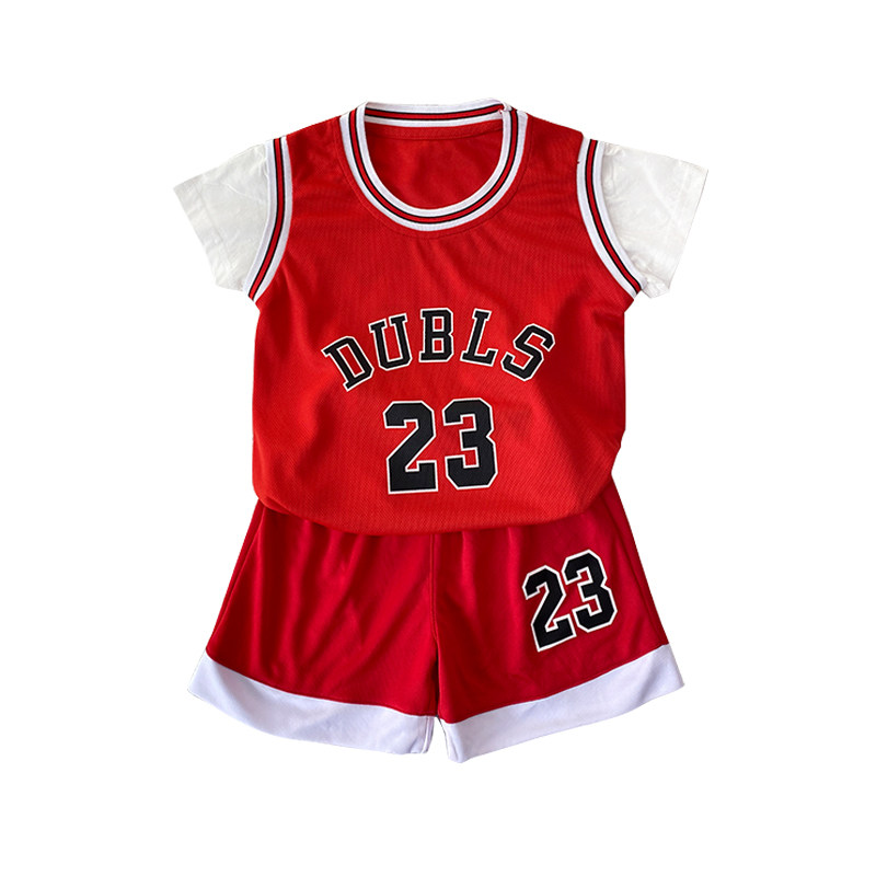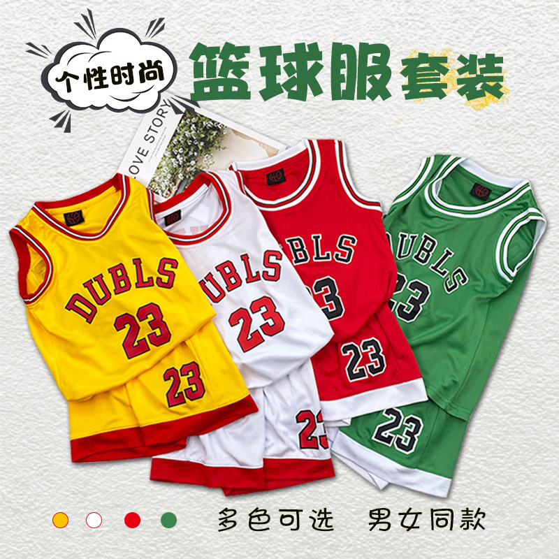 儿童篮球服套装男童短袖速干小学生背心女假两件表演训练服夏季薄