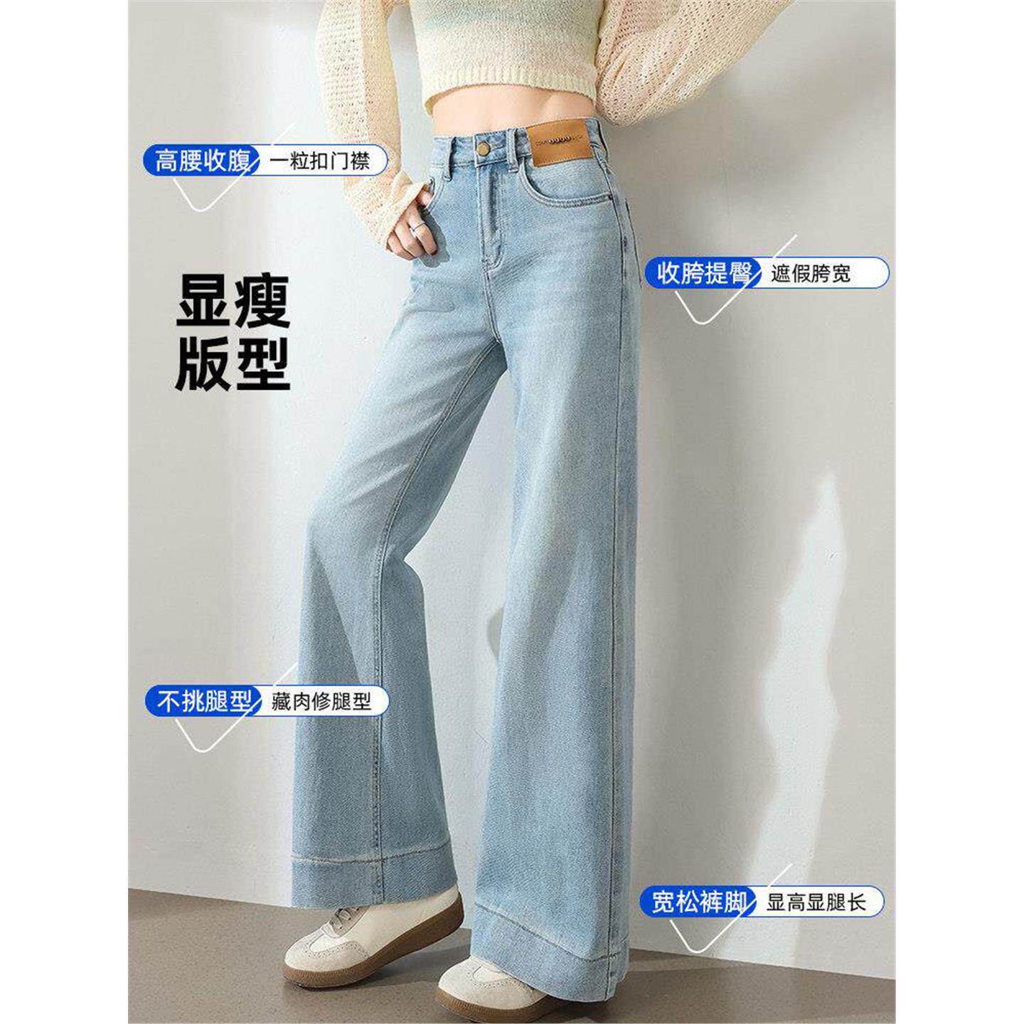 浅色微喇牛仔裤女2026新款春秋高腰显瘦直筒小个子梨型身材喇叭裤