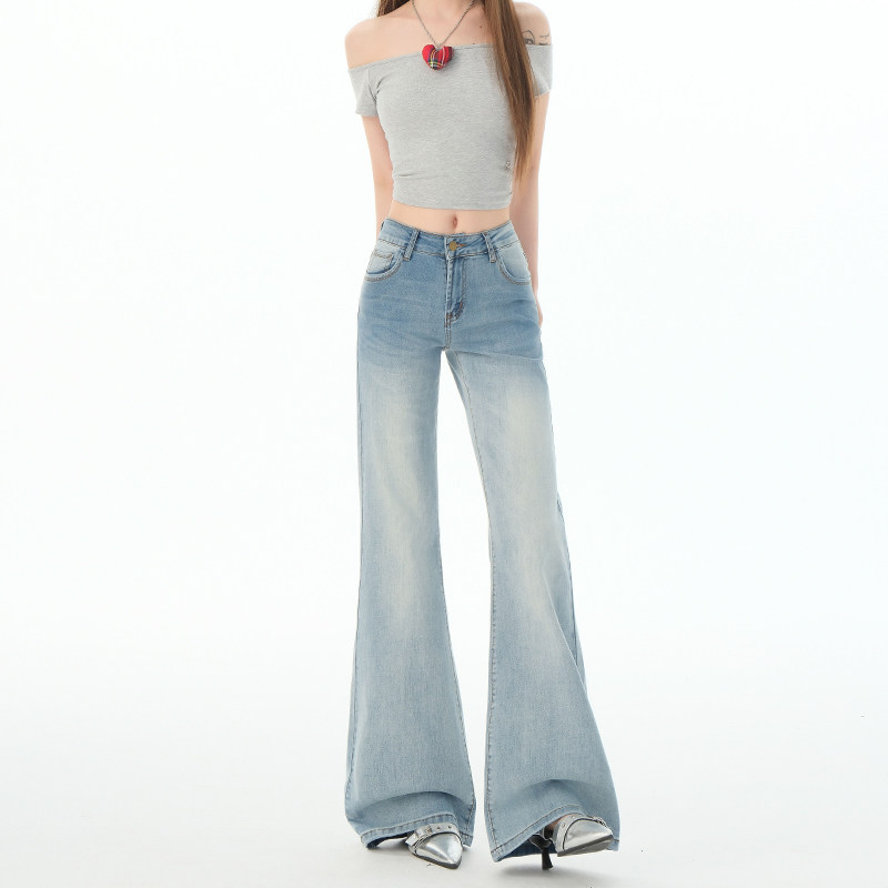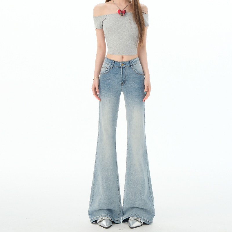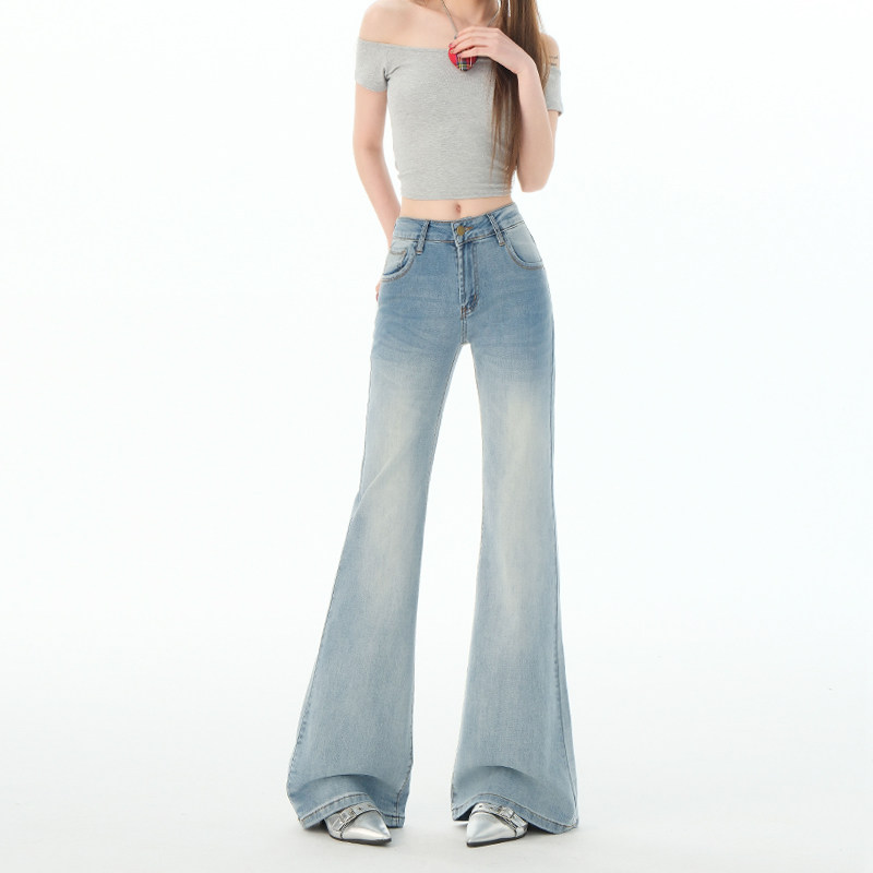小个子浅色微喇牛仔裤女2026新款不贴腿显瘦弹力垂感遮胯直筒裤子