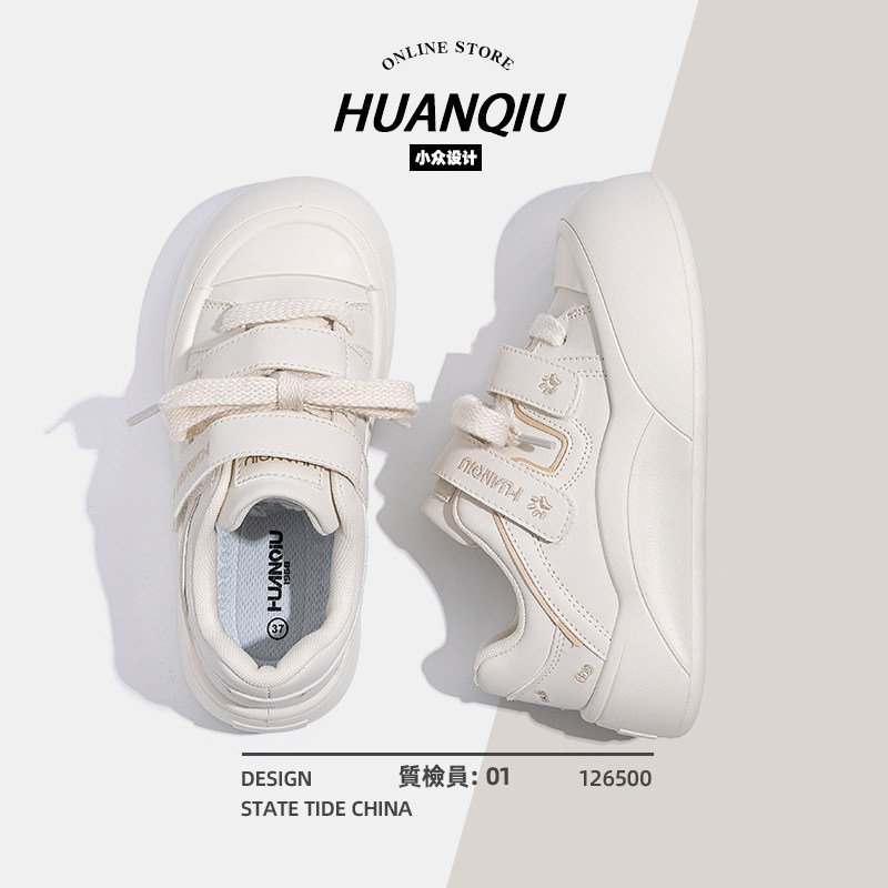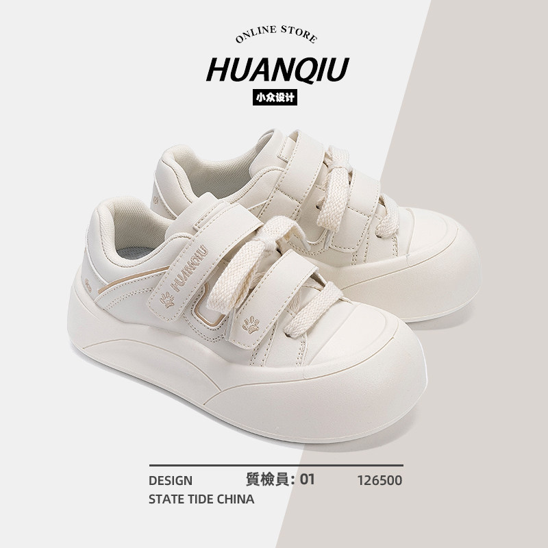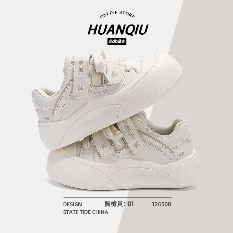 环球厚底小白鞋女2026春节新款百搭增高时尚休闲板鞋魔术贴鞋子女