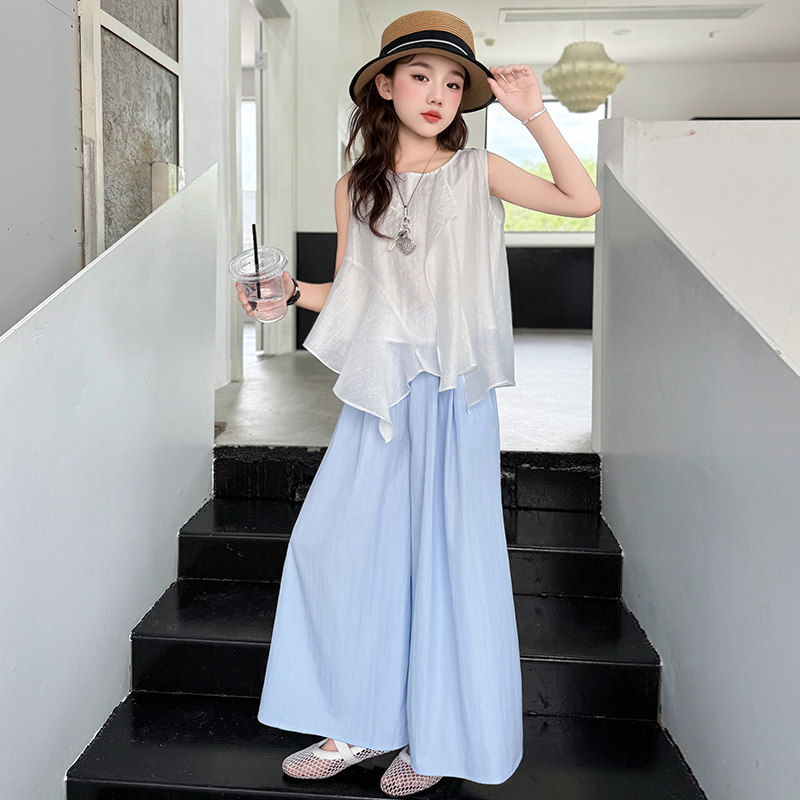 女童夏季薄款套装2025新款韩版无袖上衣阔腿裤两件套夏日清凉风