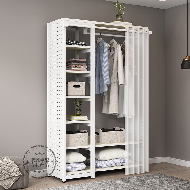 金属奶油风衣柜洞洞板转角衣帽架落地带防尘帘定制一体收纳挂衣架