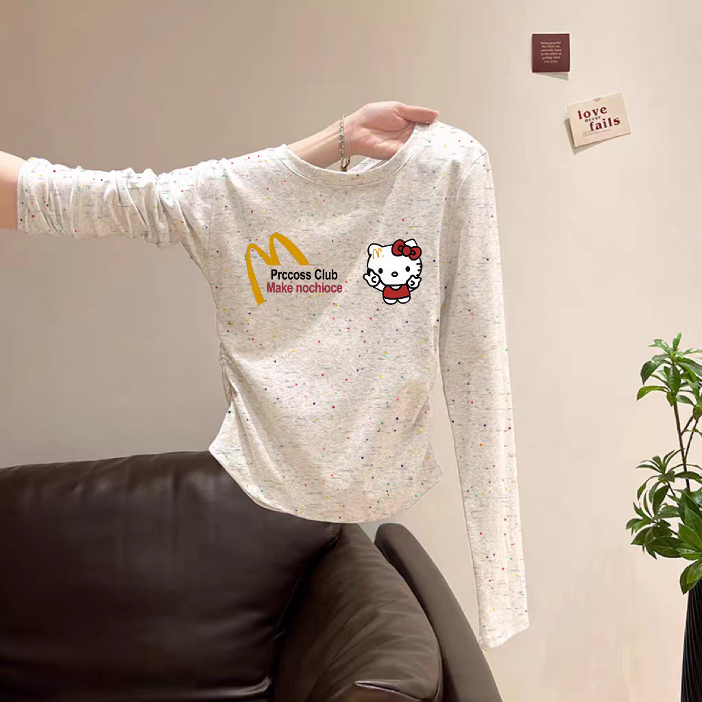 女童长袖彩点卡通印花T恤2026新款夏季上衣中大童洋气百搭打底衫