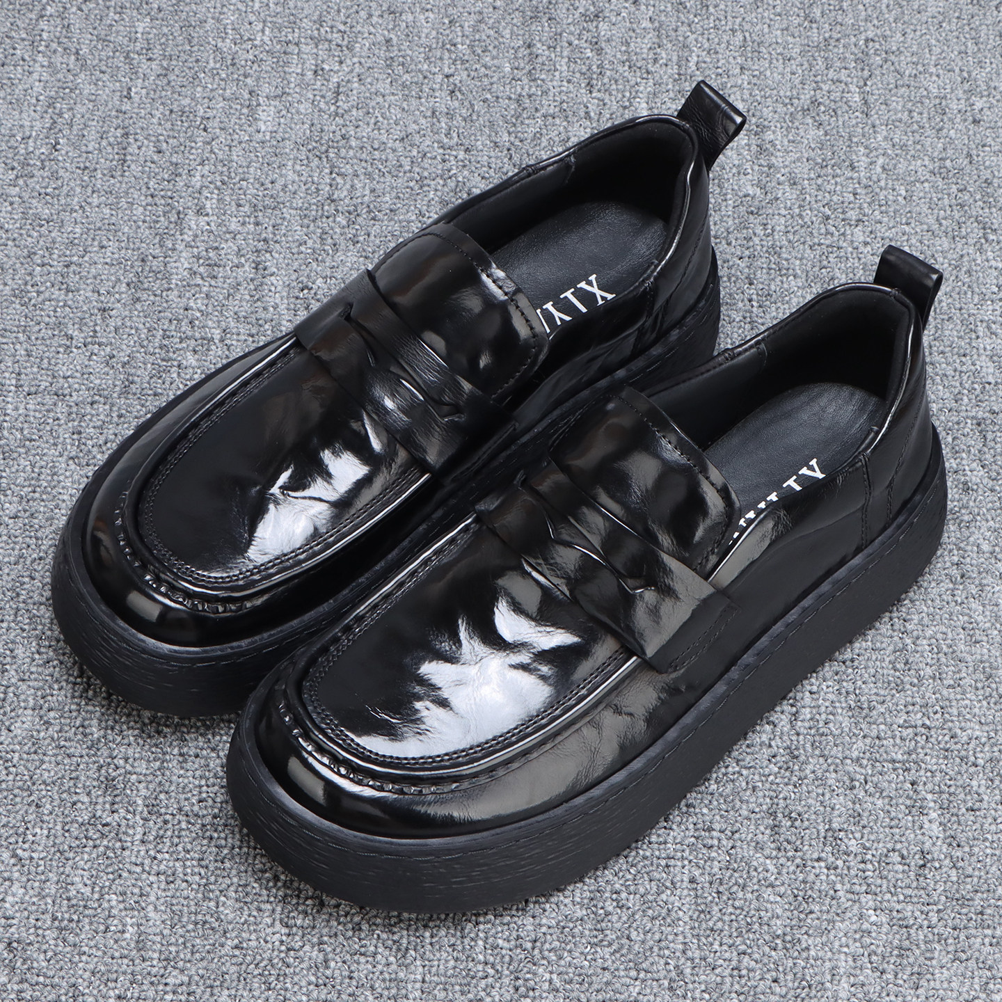 厚底男士乐福鞋2026新款软底美式休闲皮鞋男款一脚蹬真皮增高鞋子