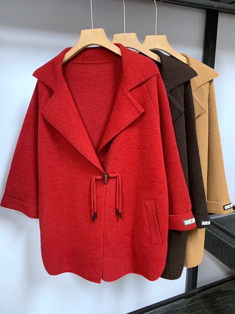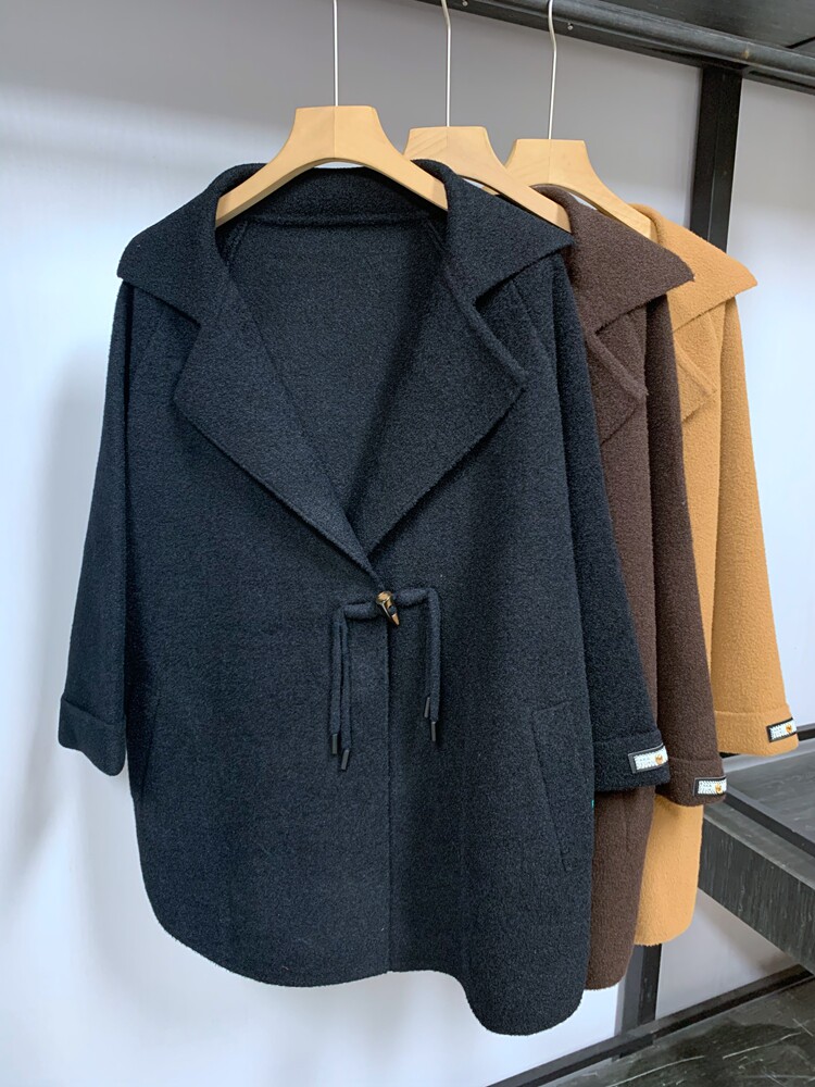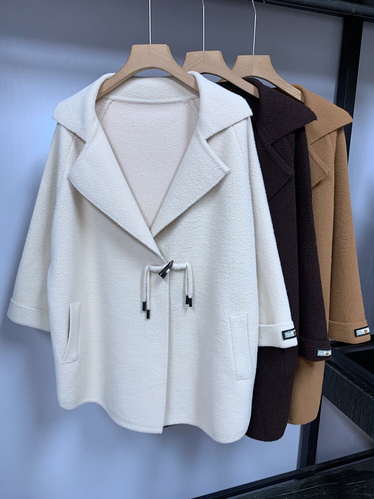 秋冬年轻妈妈装双面呢子外套洋气大码宽松中老年开衫中长款大衣女