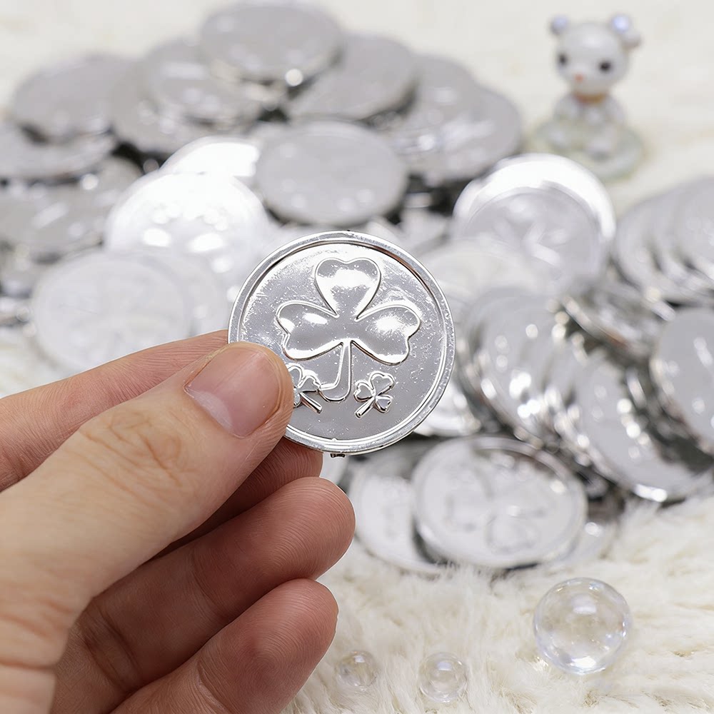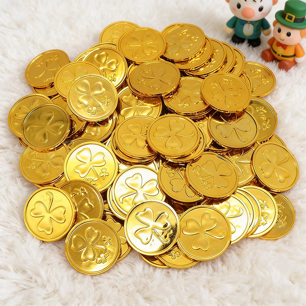 圣帕特里克节金币装饰道具绿色三叶草图案儿童玩具币海盗派对用品