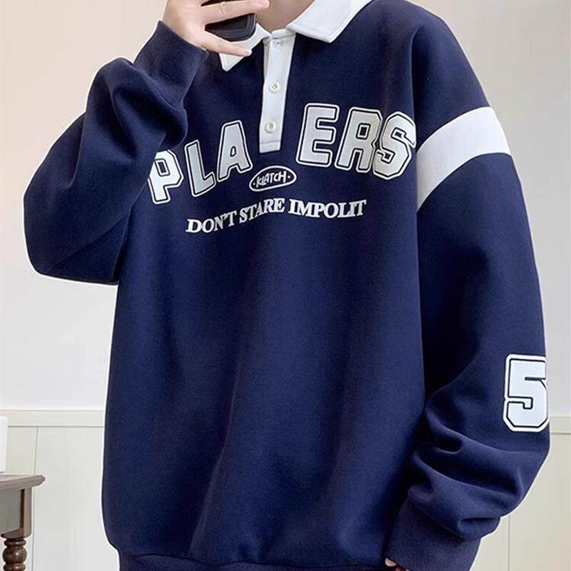 秋冬季加绒长袖翻领卫衣男2025新款帅气POLO衫青少年男生加厚上衣
