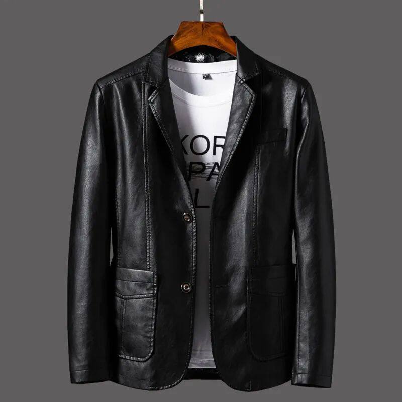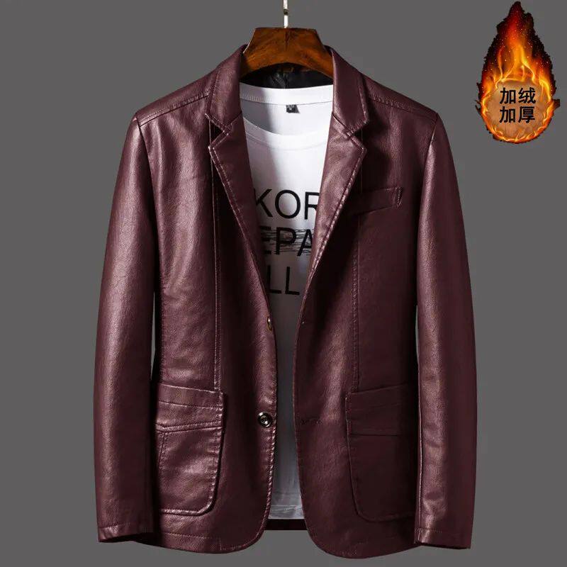 真皮绵羊皮皮西装男士春秋商务休闲中年皮衣男外套夹克皮西服大码