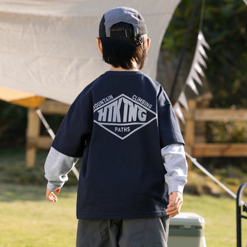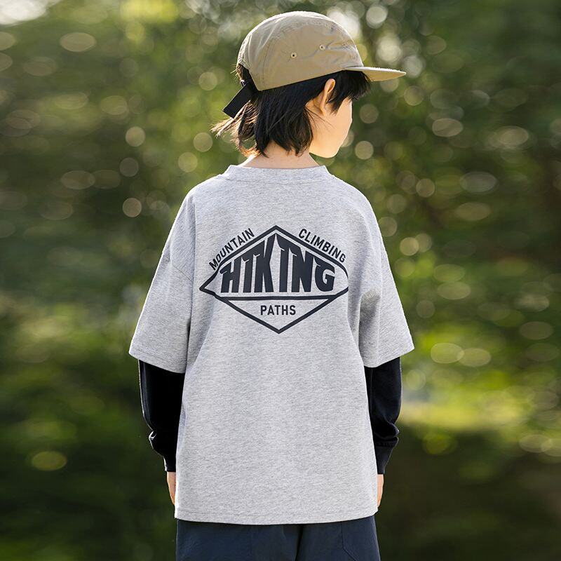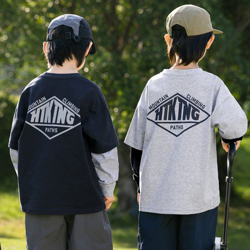 男童假两件字母印花T恤2025春季新款儿童嘻哈街舞长袖潮童装体恤