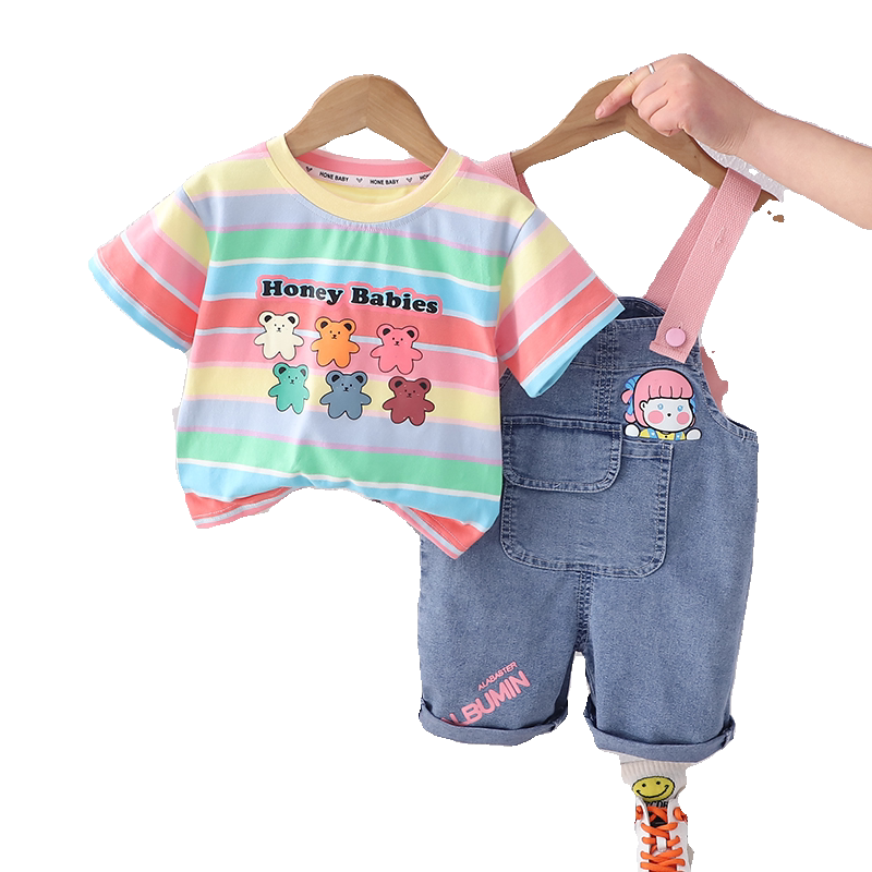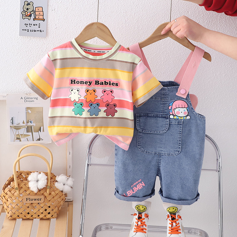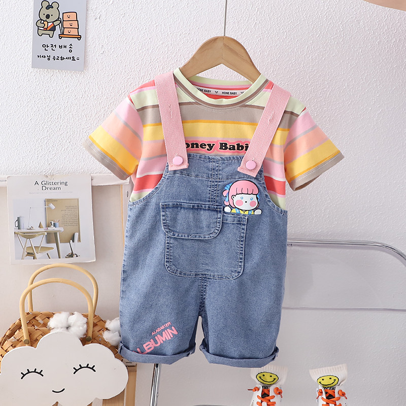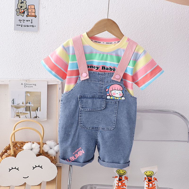女童夏季套装短袖新款洋气女宝宝夏季背带裤宝宝婴儿时髦两件套