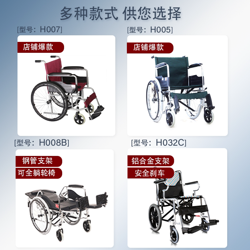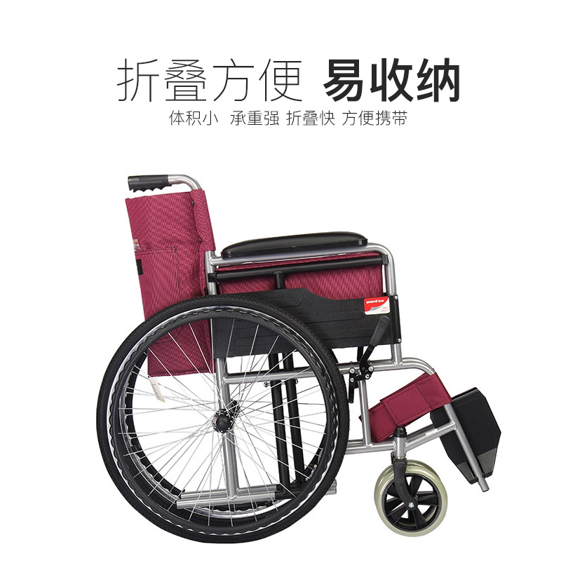 鱼跃轮椅H007轻便折叠小型老人专用多功能瘫痪残疾代步手推车