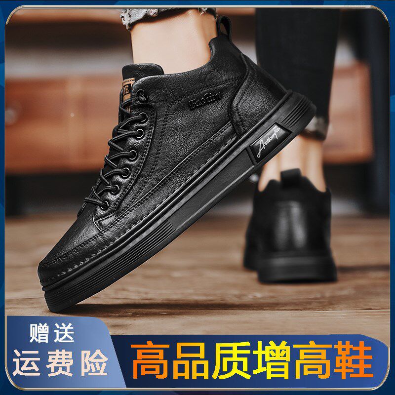 男鞋夏季内增高8cm6cm马丁男士休闲皮鞋软底黑色板鞋增高鞋男10cm