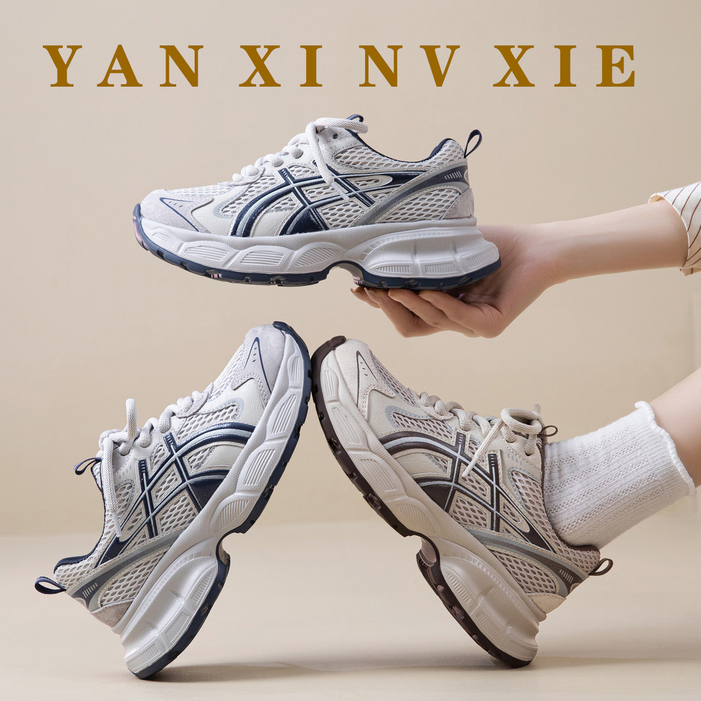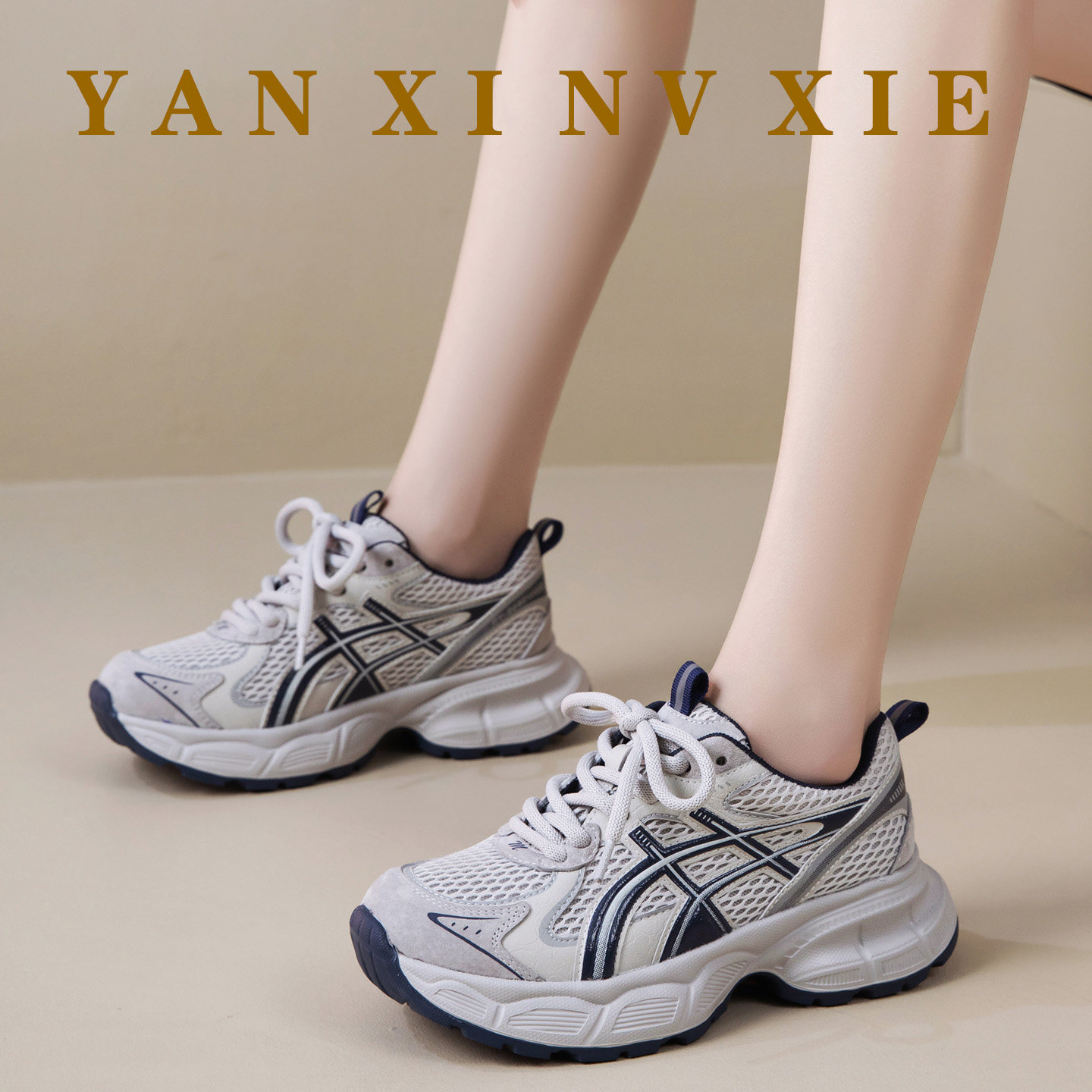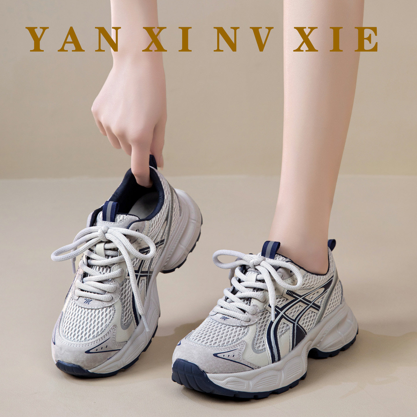 真皮爆款老爹鞋薄款网面透气女百搭配阔腿裤轻便运动休闲鞋显脚小